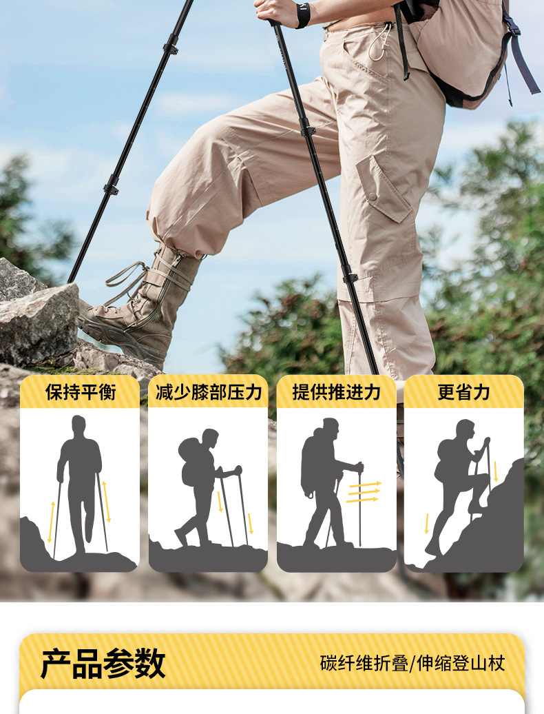 초경량 탄소섬유 접이식 등산 스틱, 전문가용 야외 잠금식 지팡이, 초경량 등산 및 하이킹 스틱, 도매스토어 가기