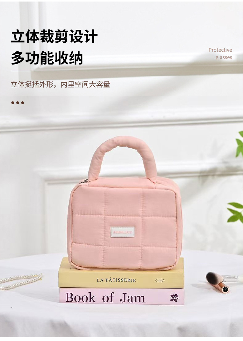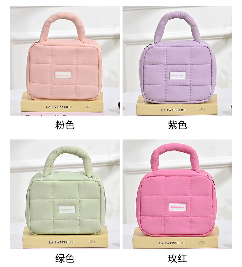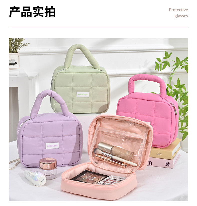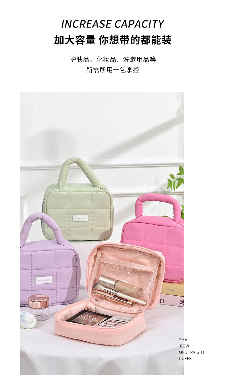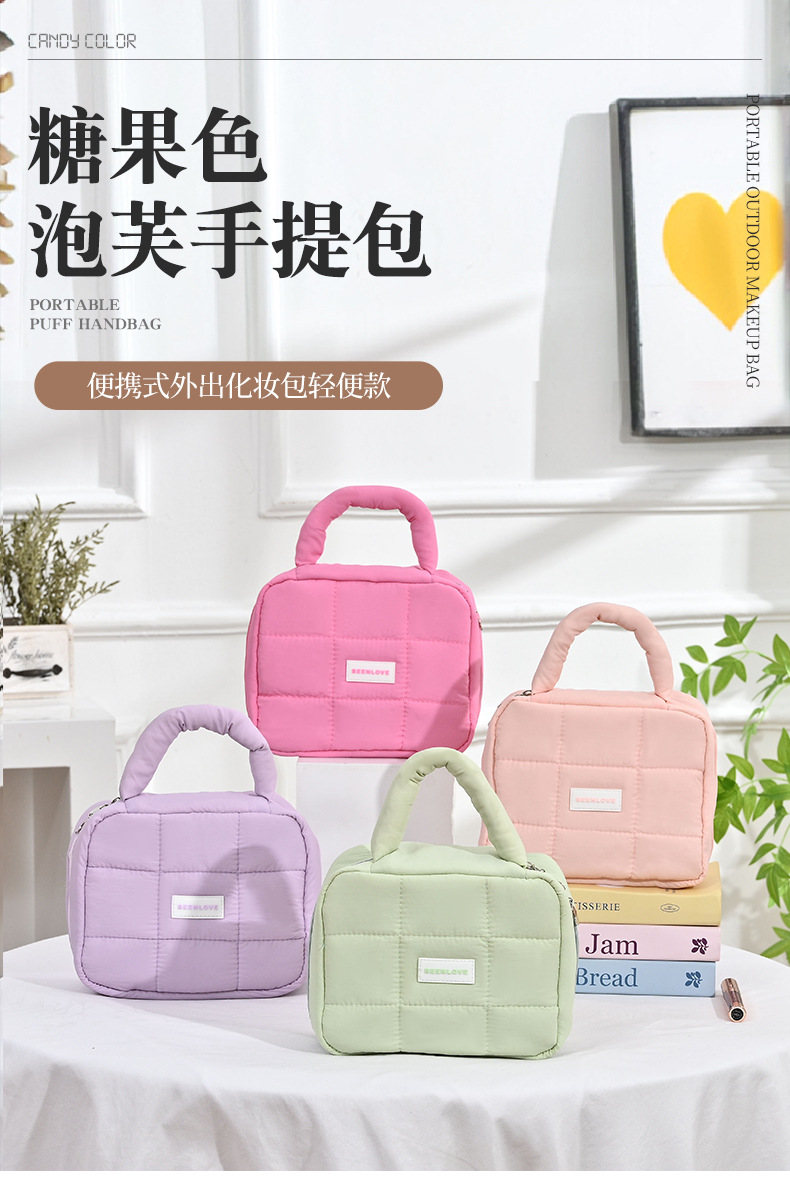퍼프 스퀘어 스토리지 백 마카롱 컬러 소프트 휴대용 여행 접이식 화장품 가방 대용량 방수 가방