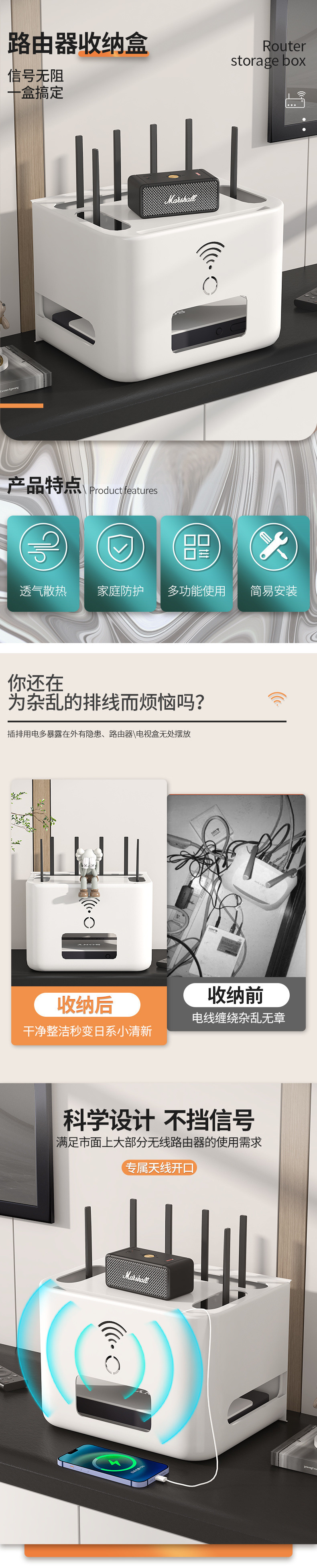 무선 네트워크 Wi-Fi 보관함 와이어 TV 셋톱 박스 데스크탑 정리함 소켓 플러그 블록 보관함
