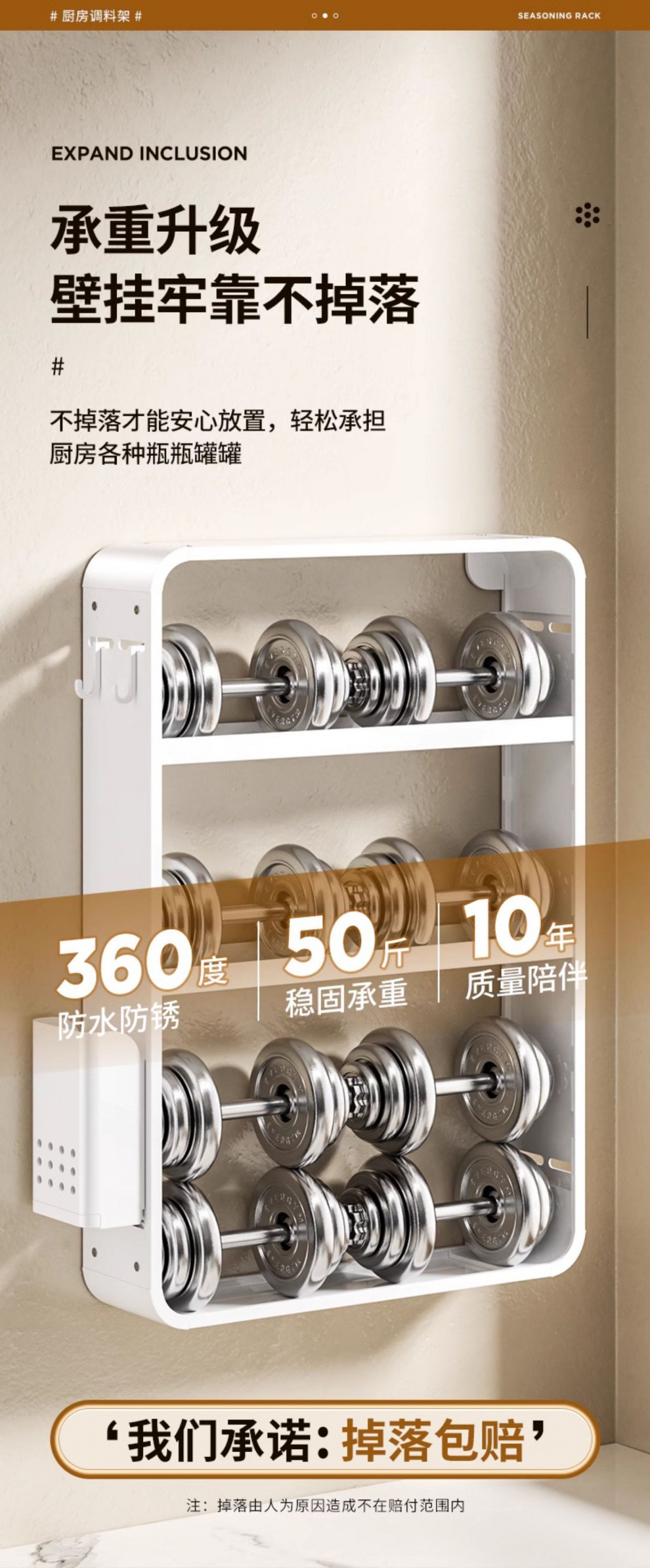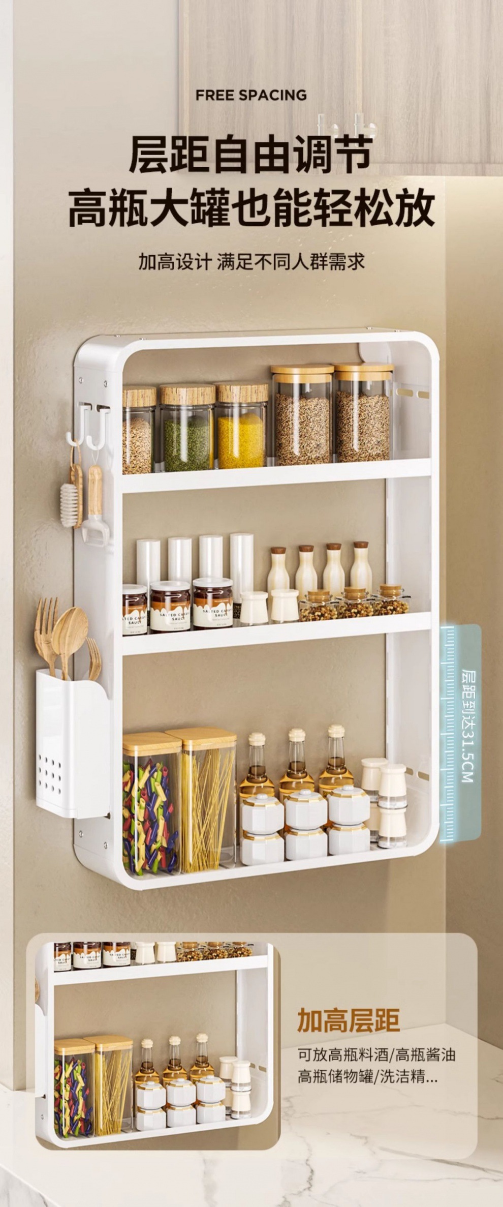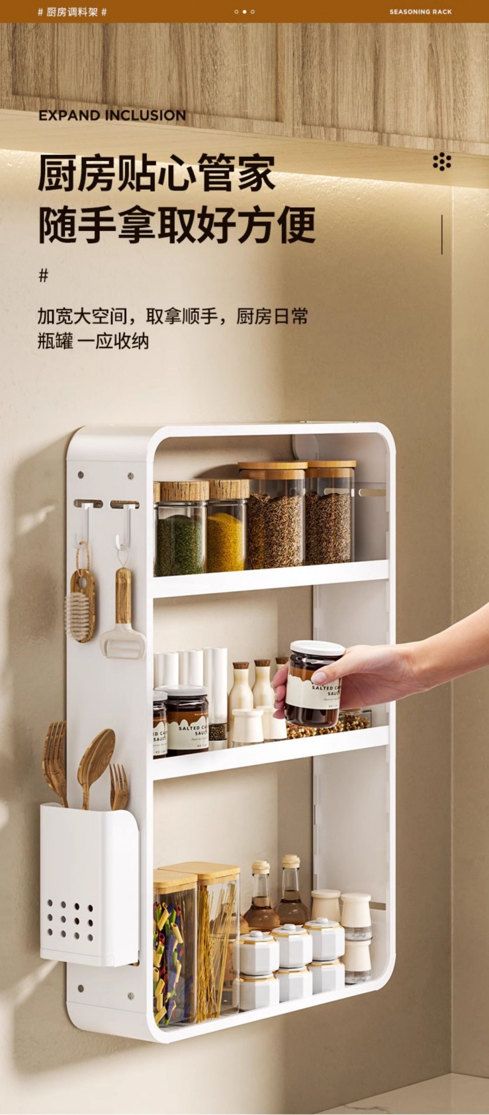 주방 랙 조미료 랙 벽걸이 형 공간 알루미늄 펀치없는 벽 다층 조미료 병 보관 랙 보관스토어 가기