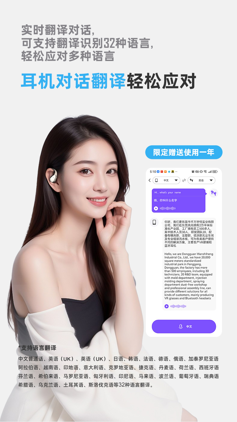 2025 새로운 AI 무선 번역 헤드셋 X5PRO 개인 모델 소음 감소 귀 매달려 폭발 국경 간 블루투스 5.4 헤드셋스토어 가기