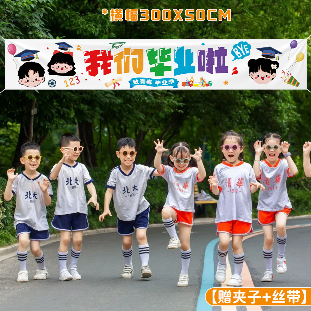 • [우리는 졸업 B] 졸업 배너 300x50cm [무료 클립 리본]