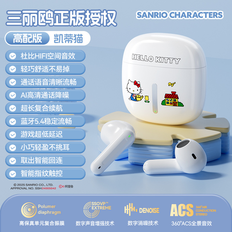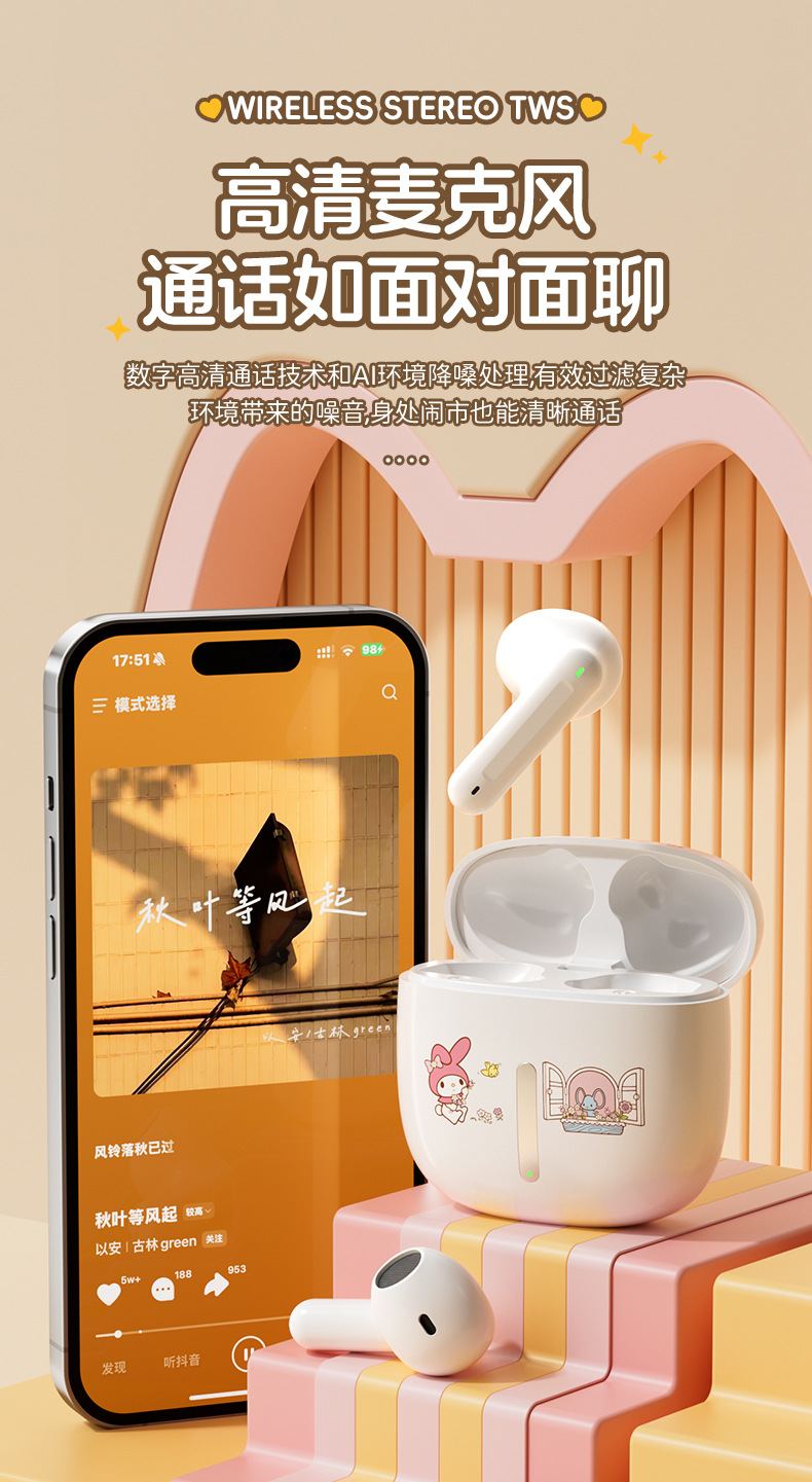 절반 귀 높은 음질 낮은 지연 소음 감소 소스 제조 업체 도매 T04 새로운 Sanrio 무선 블루투스 헤드셋스토어 가기