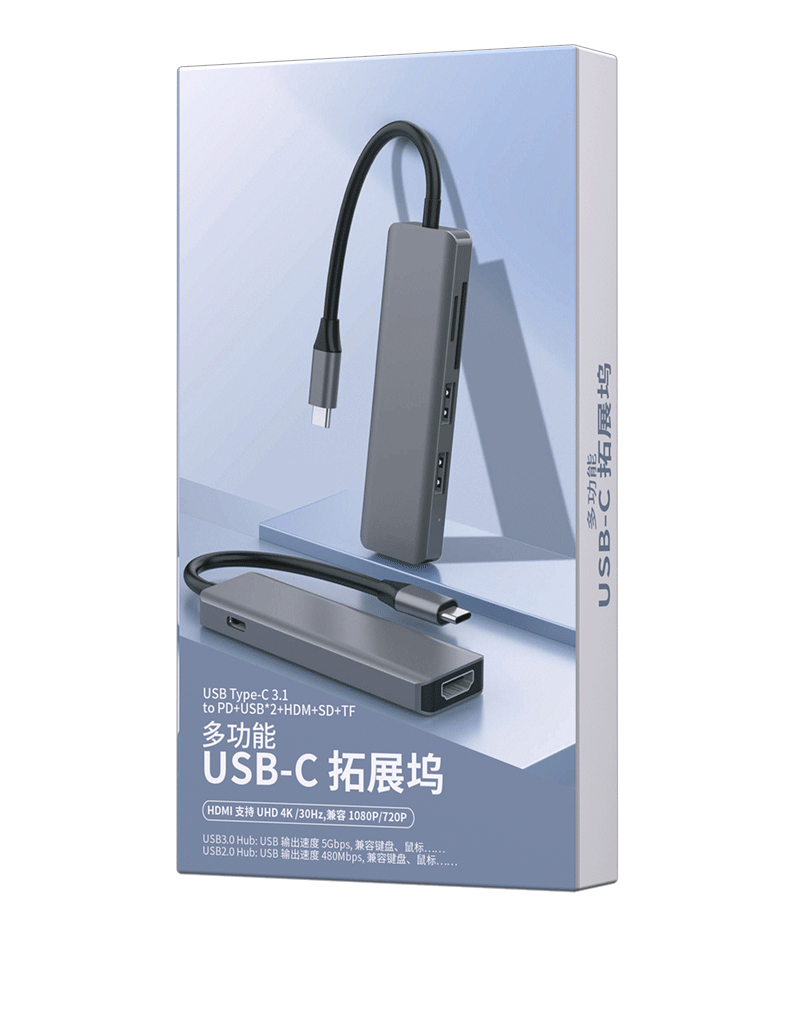 6-in-one 도킹 스테이션 유형-c 알루미늄 합금 쉘 허브 SDTF 카드 판독기 HDMI 프로젝션 USB 도킹 스테이션스토어 가기