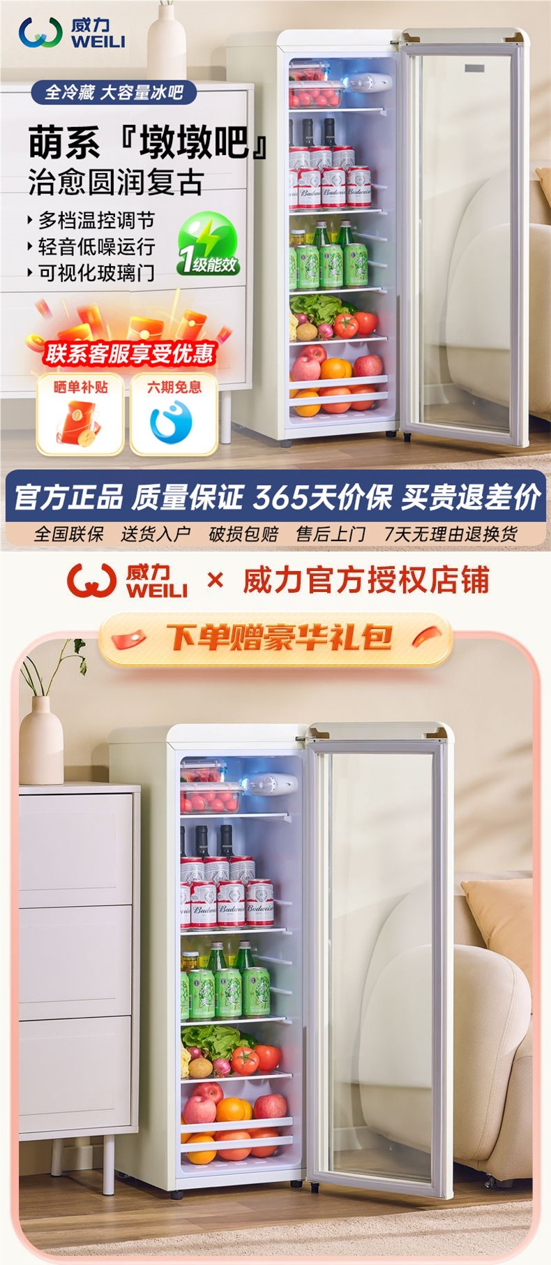 Weibingba 가정용 소형 투명 유리 냉장 와인 캐비닛 사무실 레드 와인 복고풍 냉장고 에너지 절약스토어 가기