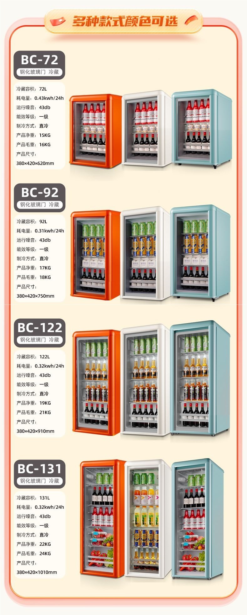 • 131리터 투명 오렌지색 냉장 에너지 절약