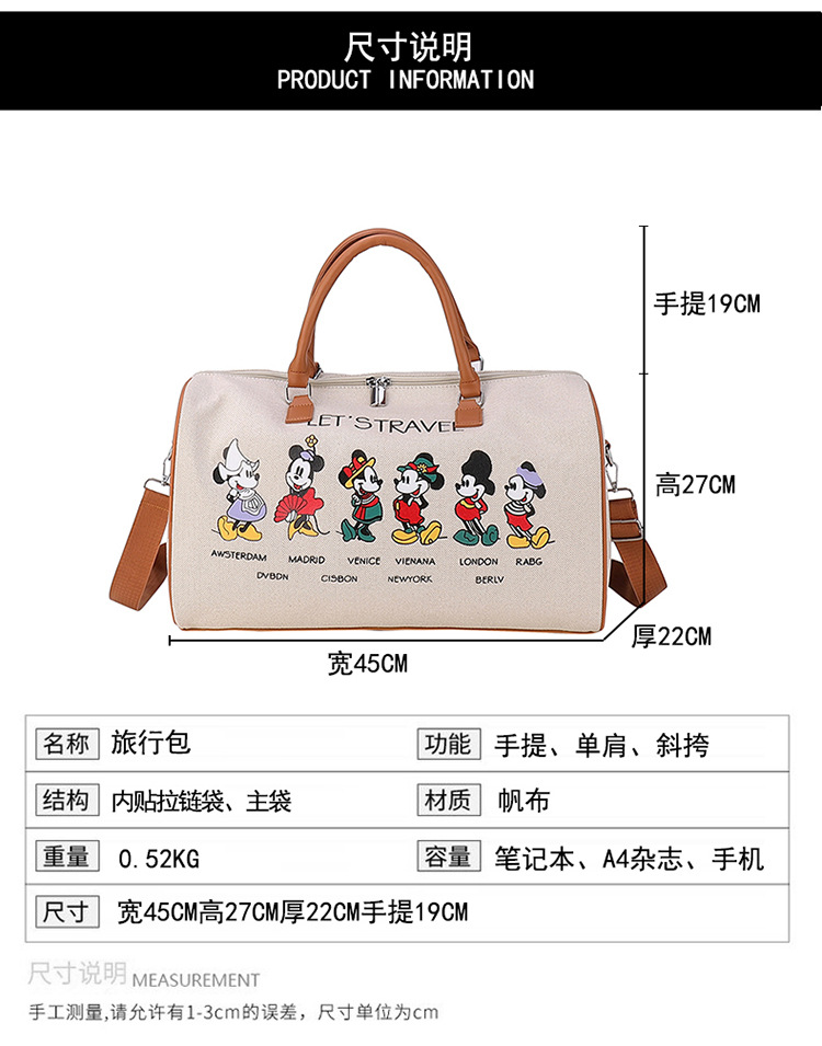 새로운 애니메이션 만화 여행 가방 미키 마우스 피트니스 가방 휴대용 대용량 저장 가방 유럽과 미국의 패션 어깨 가방스토어 가기