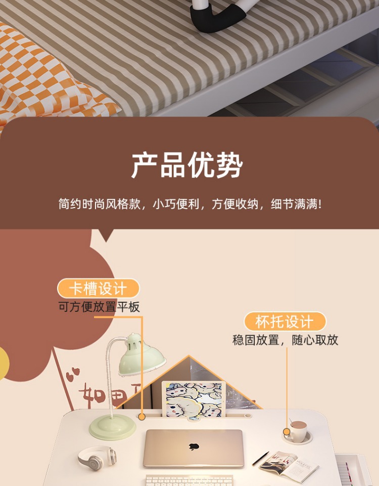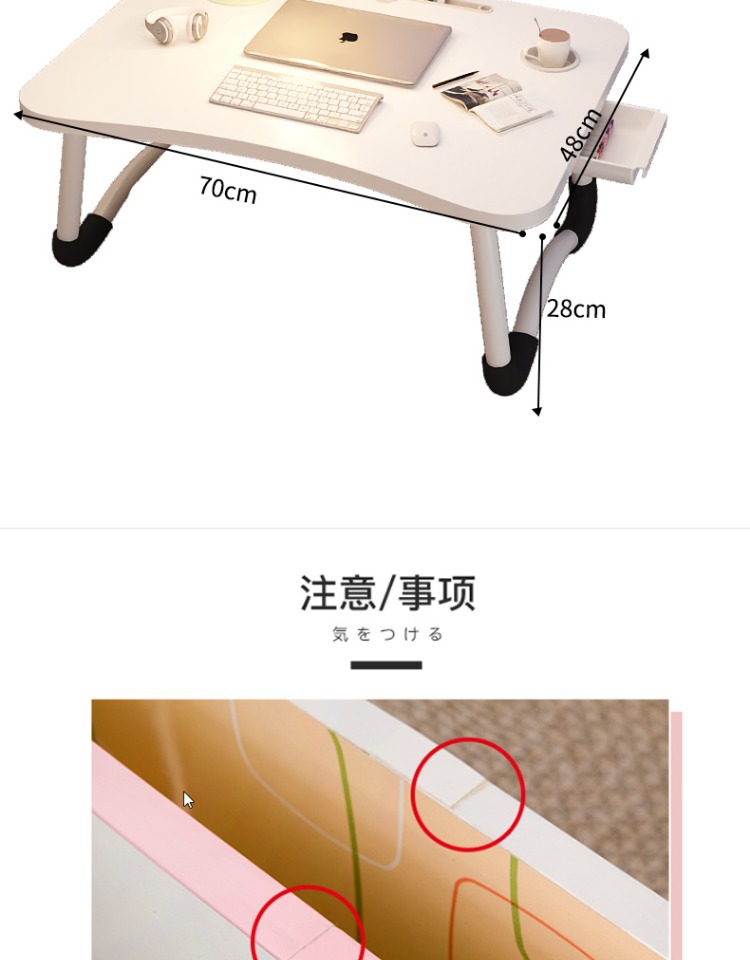 • 60*40*28cm 벚꽃 파우더 | 카드 슬롯 + 컵 홀더 + 강화 테이블 다리 + 초승달 모양의 데스크탑 포함