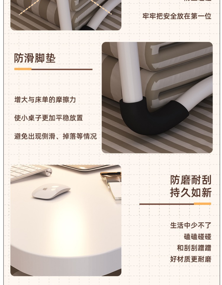 • 60*40*28cm 따뜻한 흰색 | 카드 슬롯이 있는 컵 홀더 + 강화된 테이블 다리 + 초승달 모양의 테이블 상판