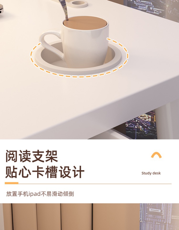 • 60*40*28cm 따뜻한 흰색 | 카드 슬롯이 있는 컵 홀더 + 강화된 테이블 다리 + 수납 서랍