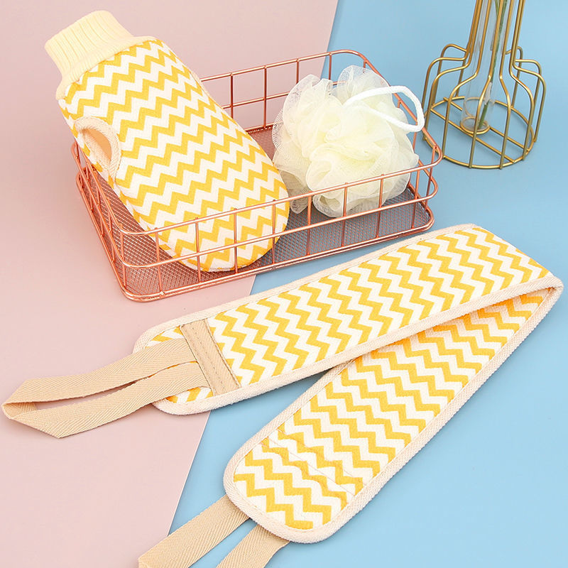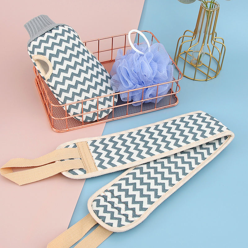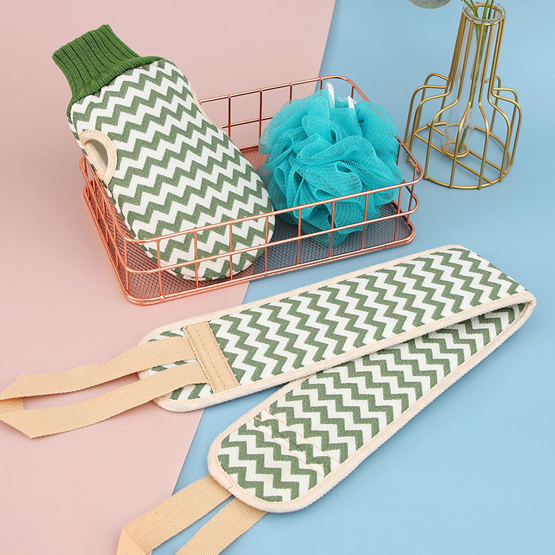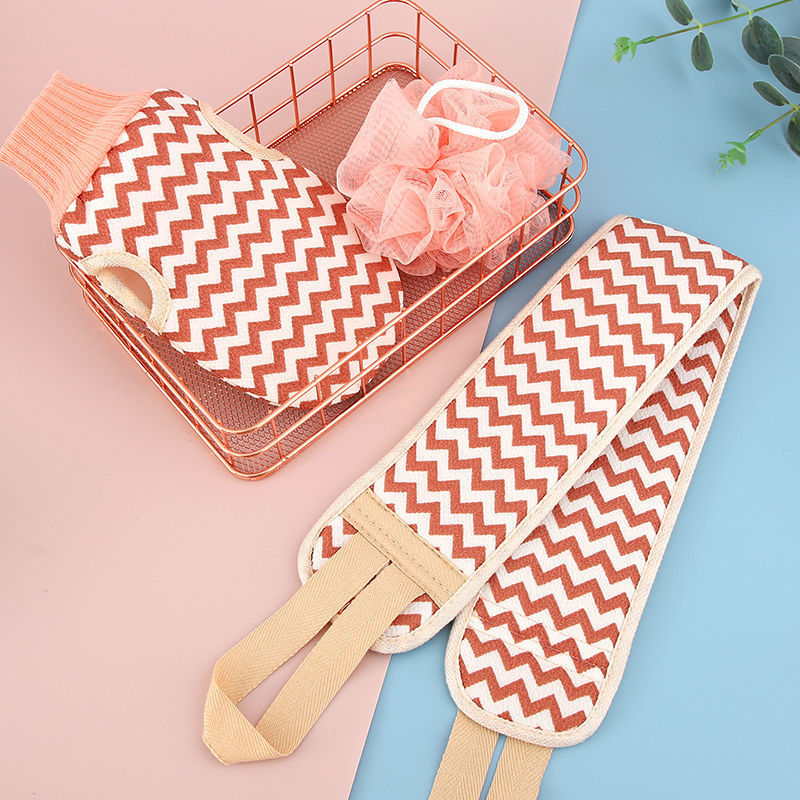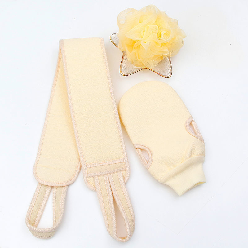 3피스 목욕타월 세트, 목욕볼, 등마사지 스트립, 오염제거용 미세 및 굵은 모래 목욕볼, 꽃무늬 등마사지 스트립, 롱 목욕 스트립