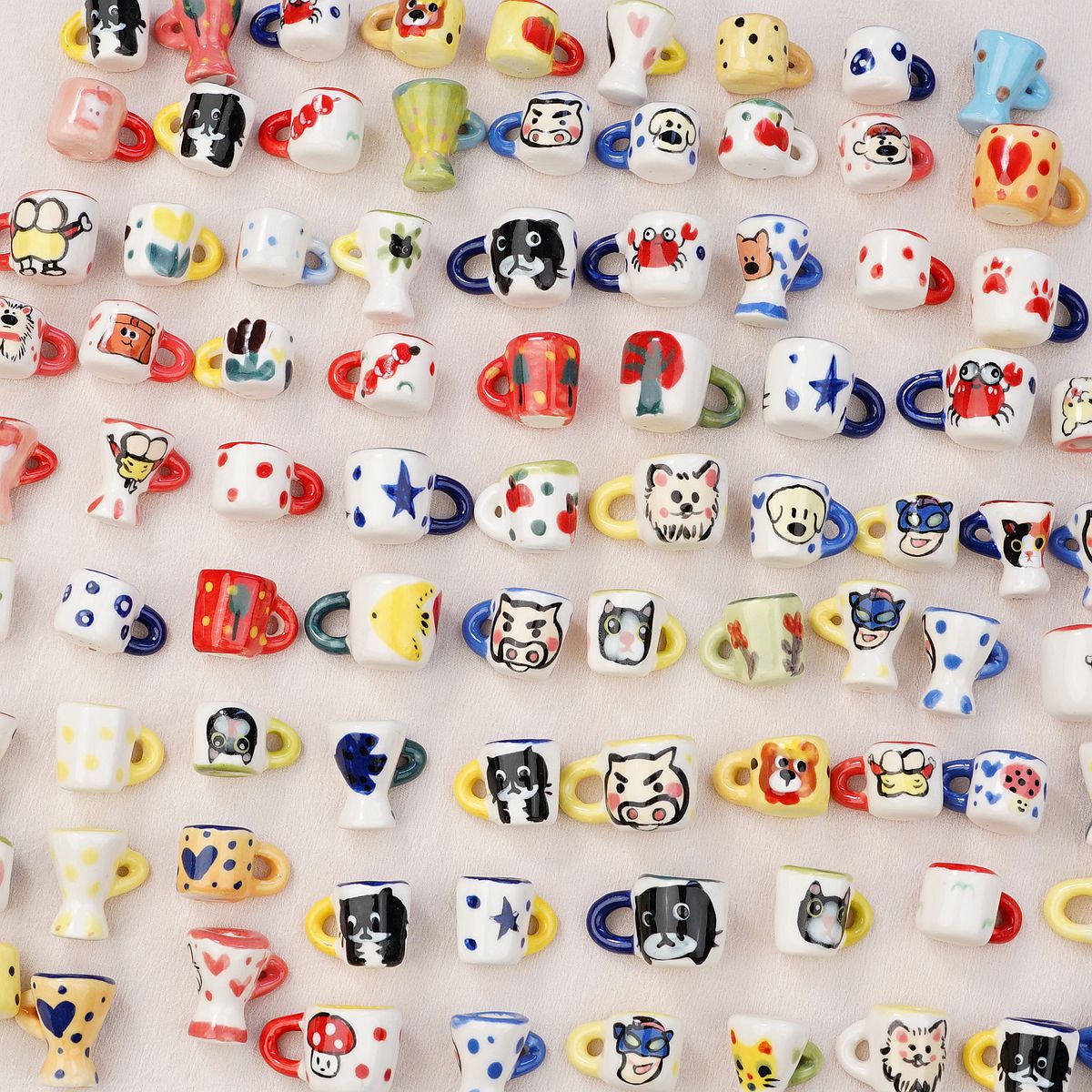 Jingdezhen 세라믹 손으로 그린 미니 다채로운 만화 작은 물 컵 보석 액세서리 수제 DIY 소재 도매 크리에이티브