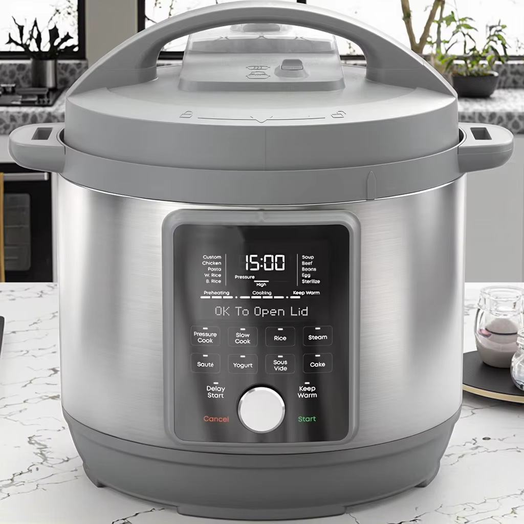 6쿼트 기능 9-in-1 6쿼트 스테인리스 스틸 전기 압력솥은 저소음 보온 기능을 갖춘 요구르트 제조기로 사용할 수 있습니다.