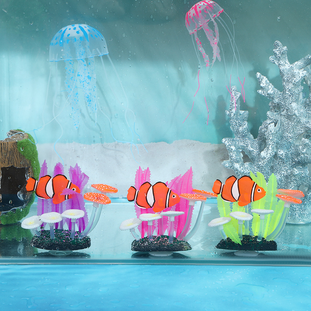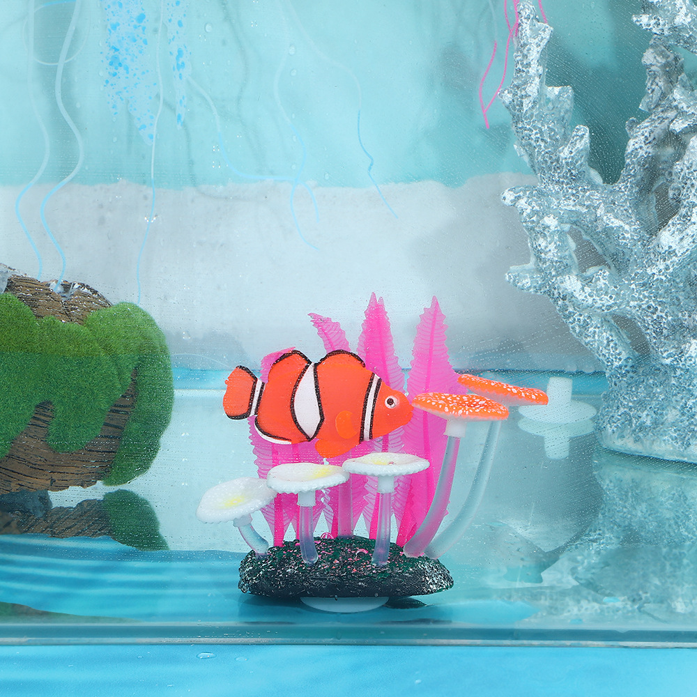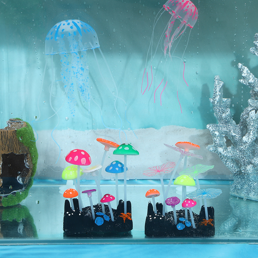 수족관 장식 빛나는 연꽃 잎 버섯 광대 물고기 실리콘 수조 장식품 시뮬레이션 형광 산호 암석 조경