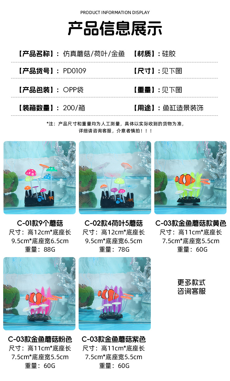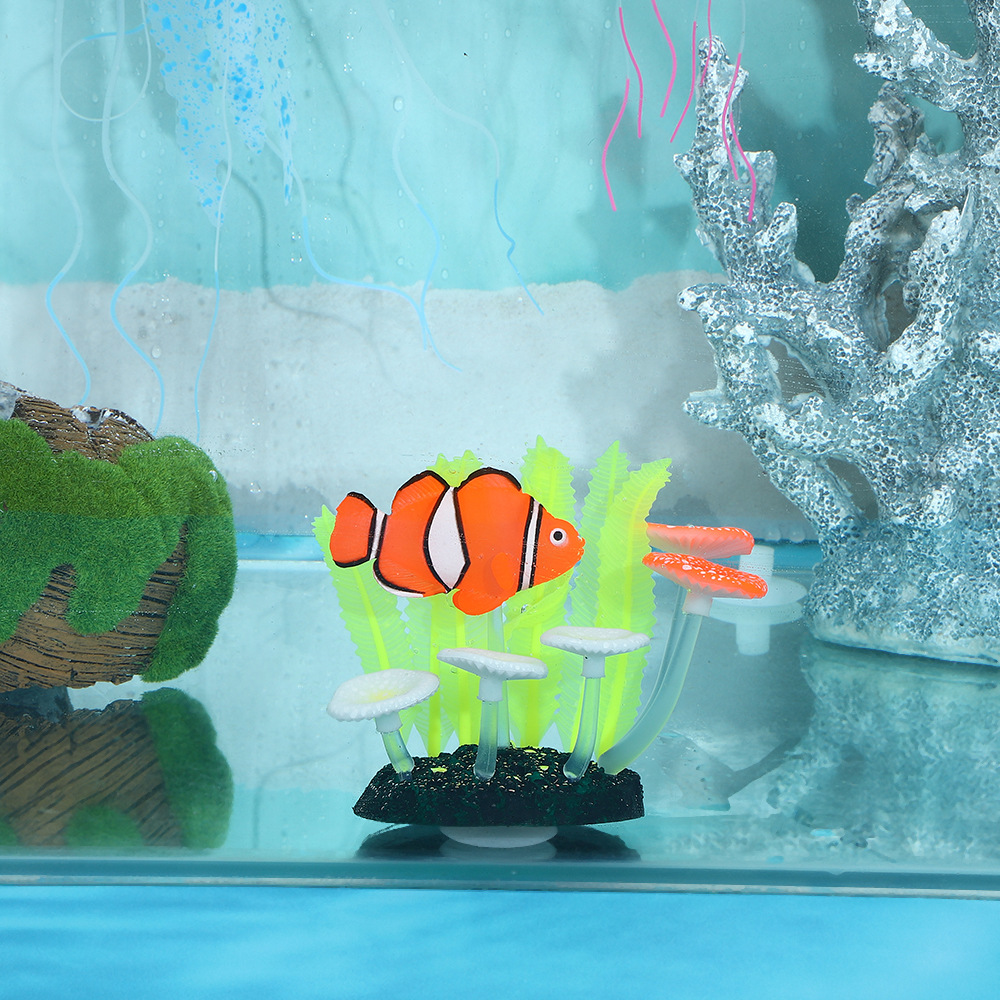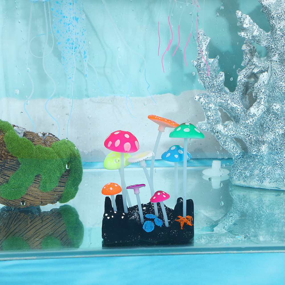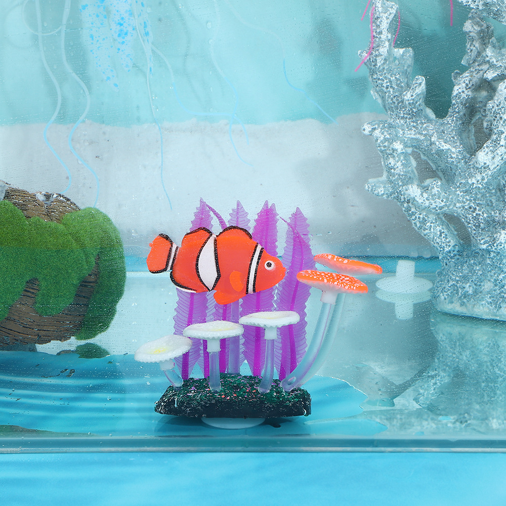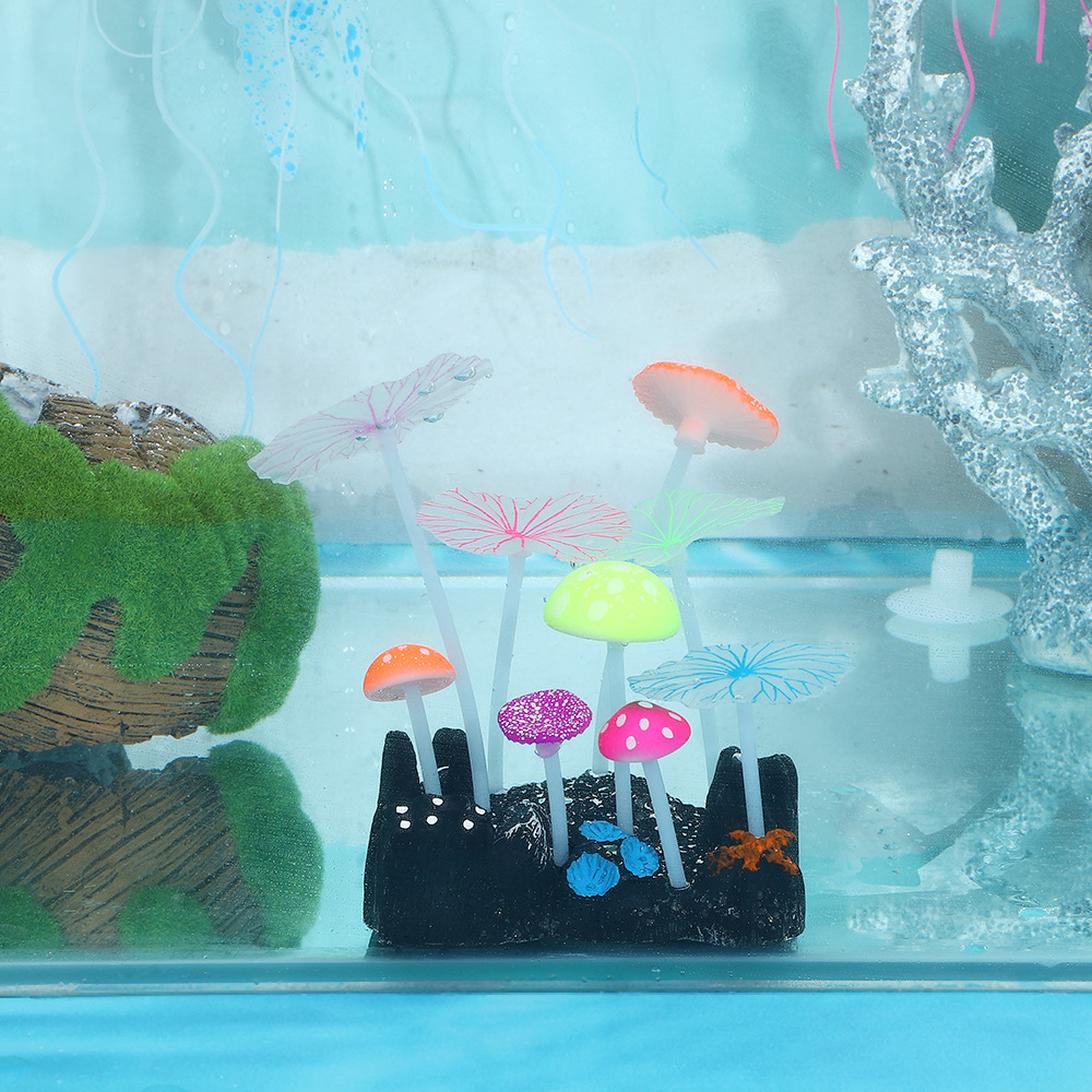 수족관 장식 빛나는 연꽃 잎 버섯 광대 물고기 실리콘 수조 장식품 시뮬레이션 형광 산호 암석 조경스토어 가기