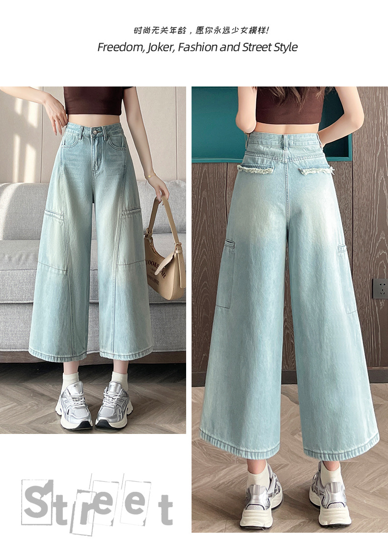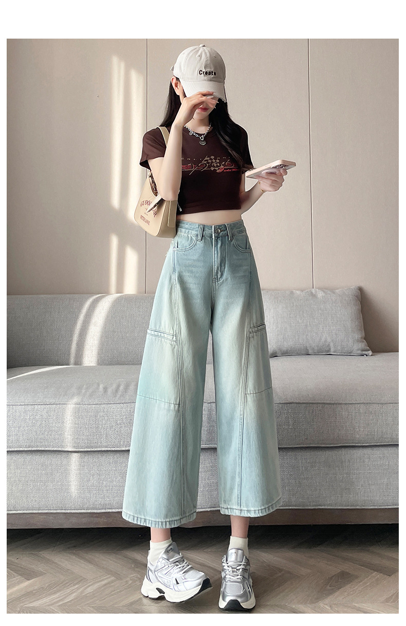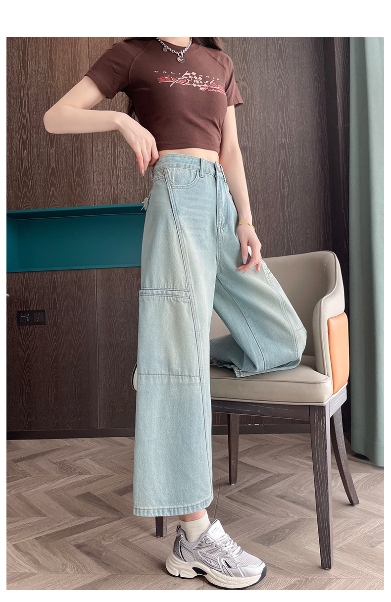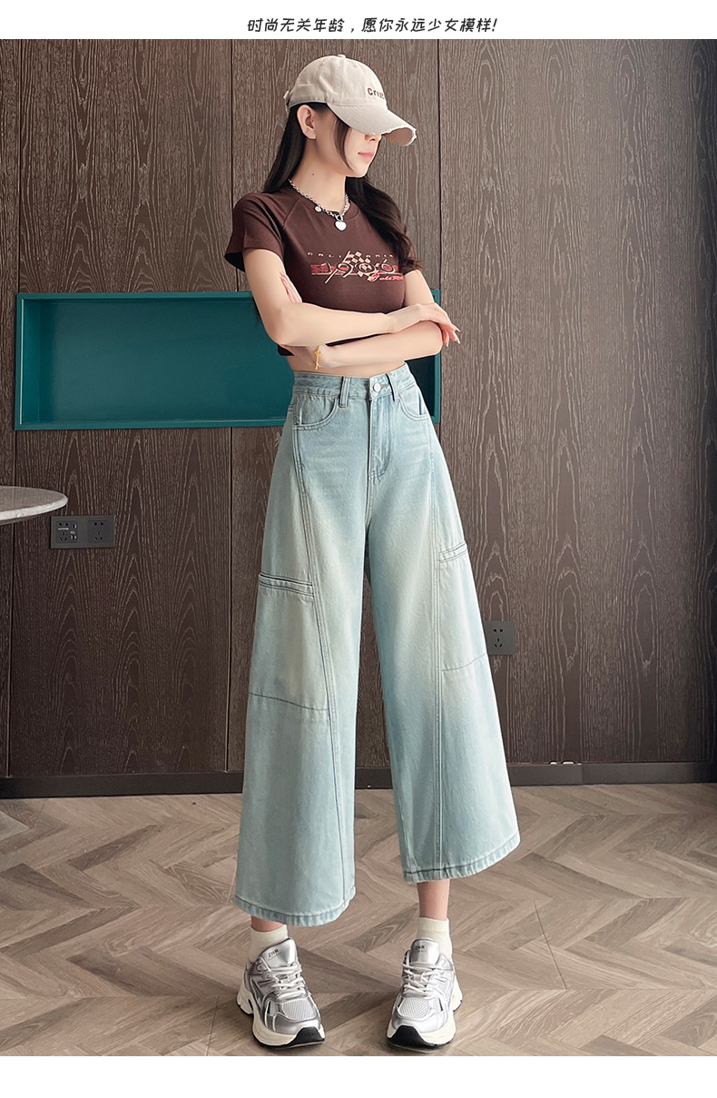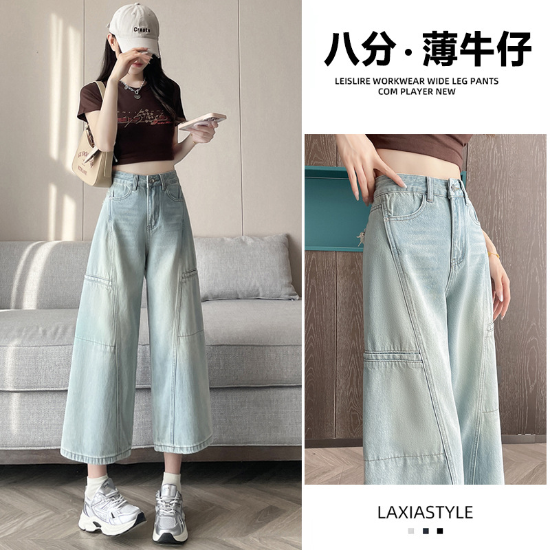 배형과 살찐 여성을 위한 8부 데님 워크웨어 와이드 팬츠 2025 여름 얇은 하이웨이스트 루즈한 작은 할머니 팬츠스토어 가기