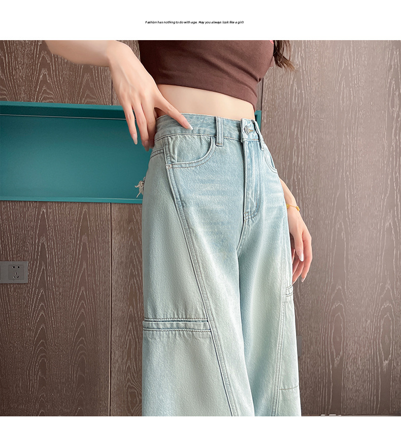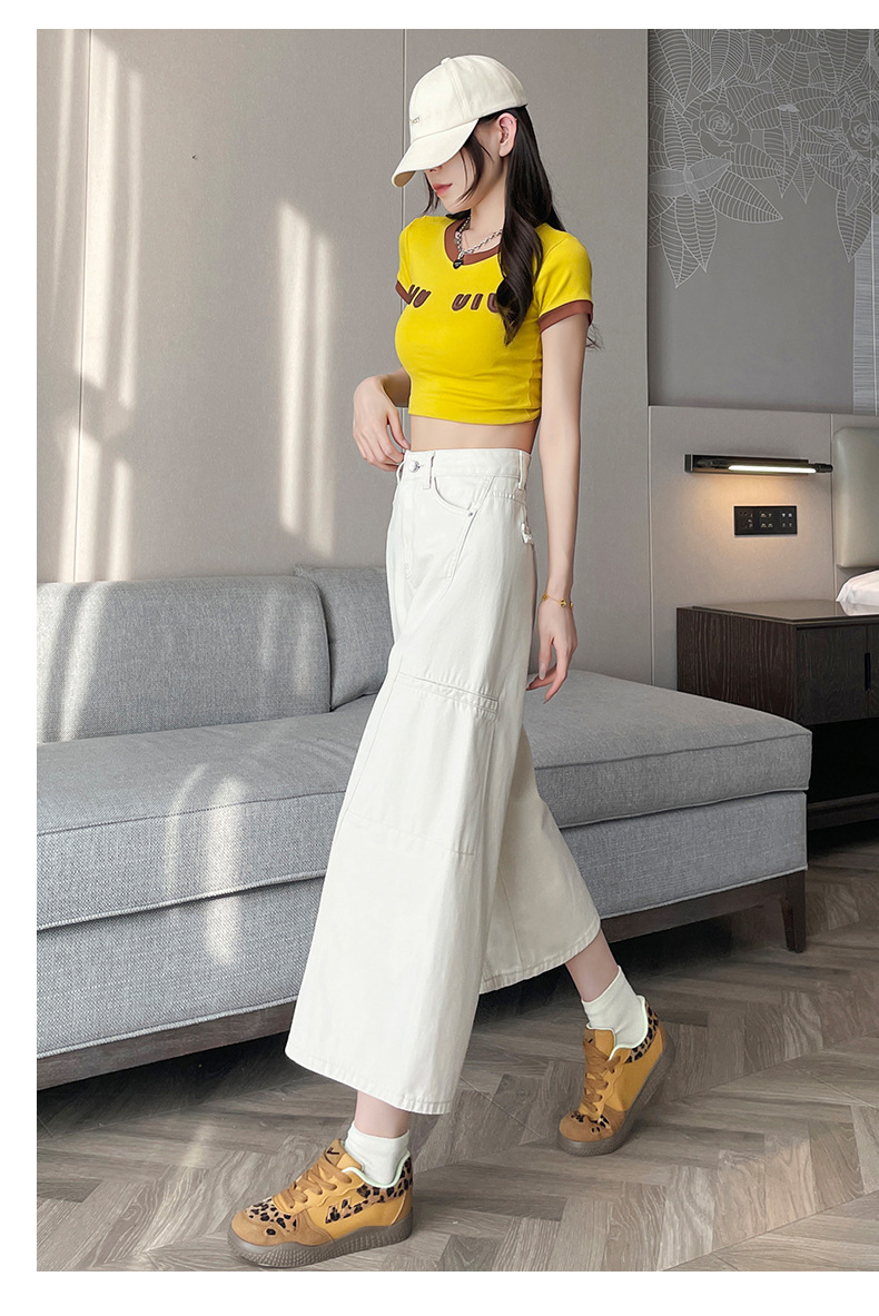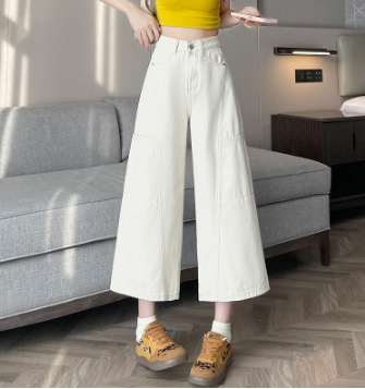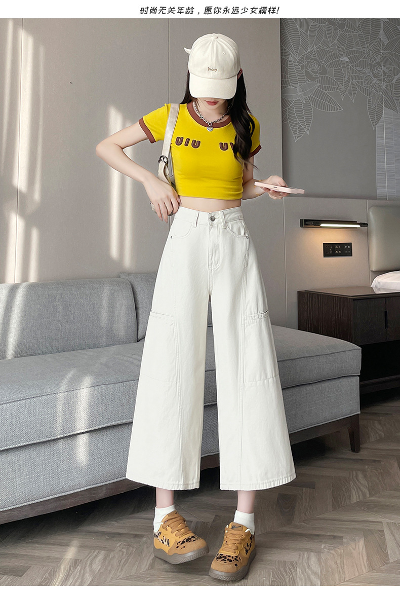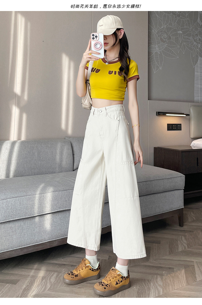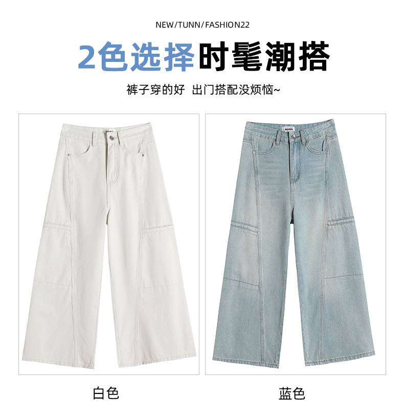배형과 살찐 여성을 위한 8부 데님 워크웨어 와이드 팬츠 2025 여름 얇은 하이웨이스트 루즈한 작은 할머니 팬츠스토어 가기