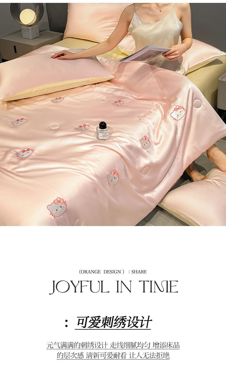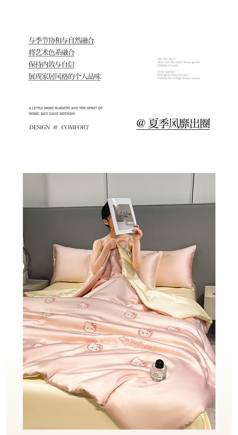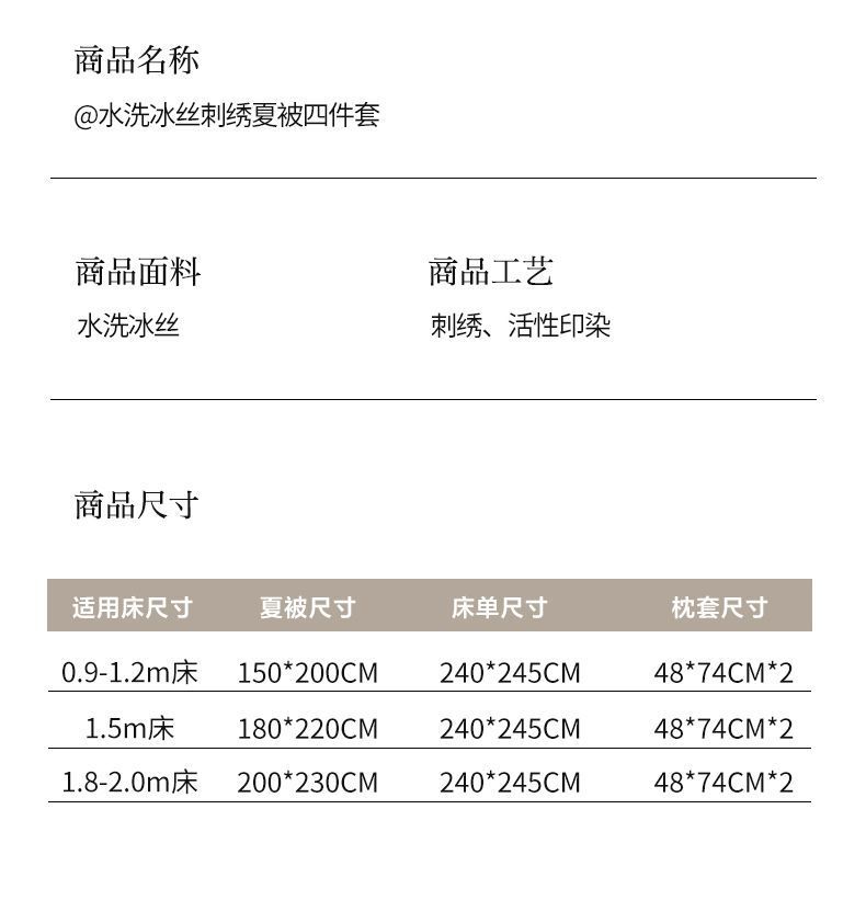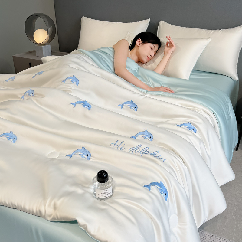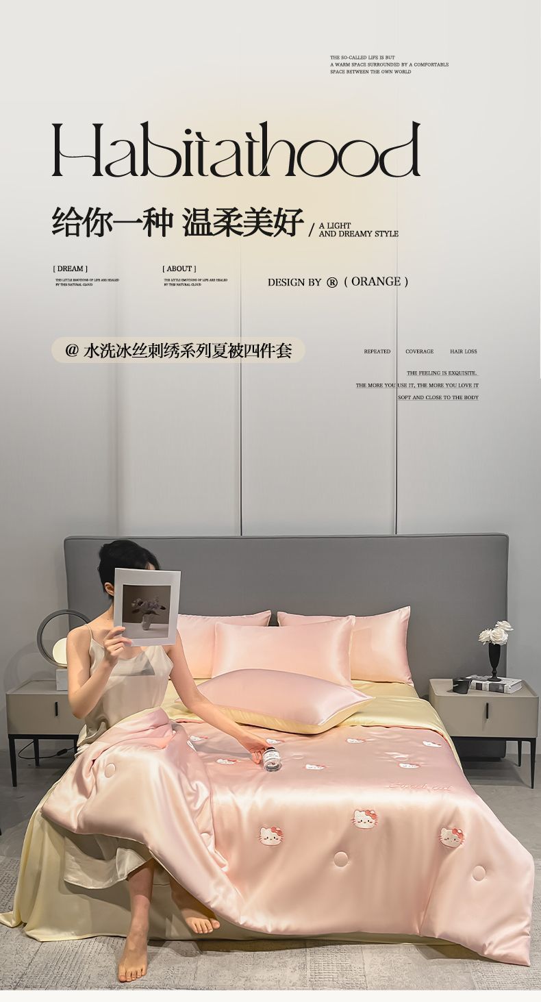 여름 빛 럭셔리 아이스 실크 여름 퀼트 4 피스 세트 세척 실크 자수 여름 시원한 이불 에어컨 이불 기계 세탁기 얇은 이불스토어 가기