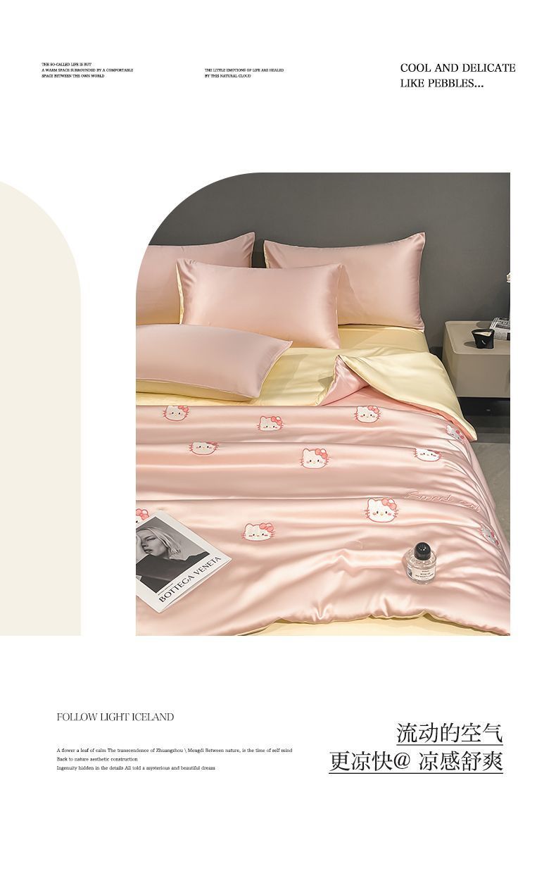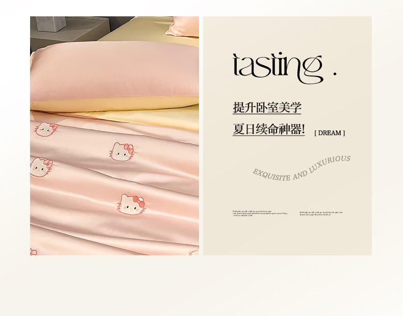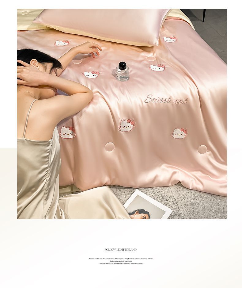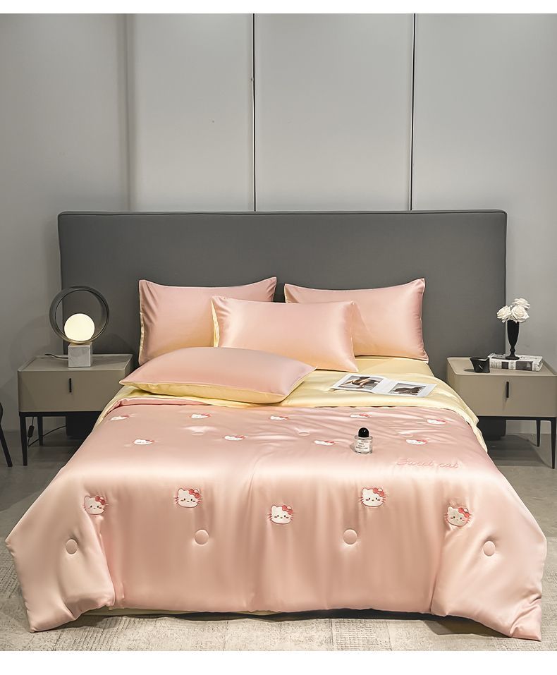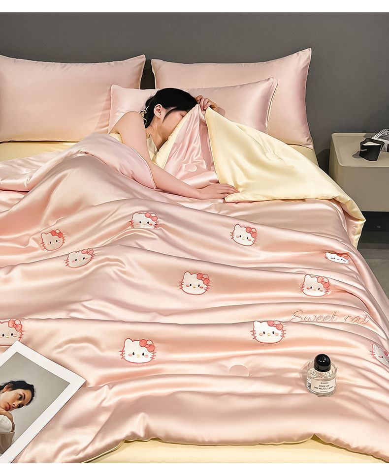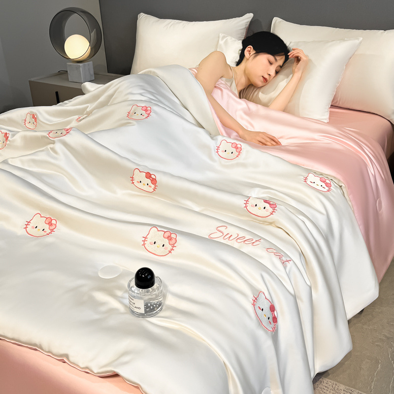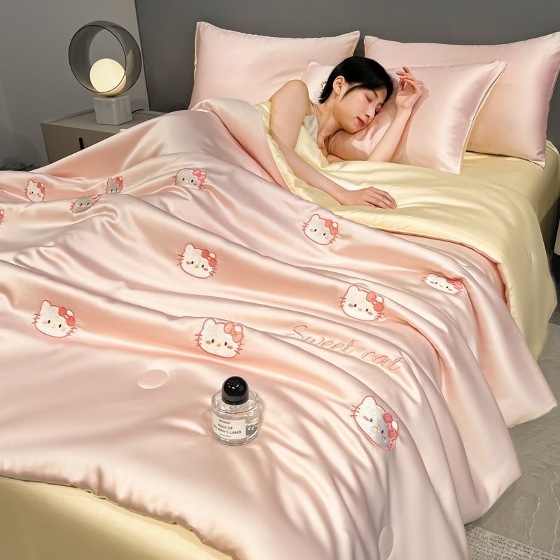 여름 빛 럭셔리 아이스 실크 여름 퀼트 4 피스 세트 세척 실크 자수 여름 시원한 이불 에어컨 이불 기계 세탁기 얇은 이불스토어 가기