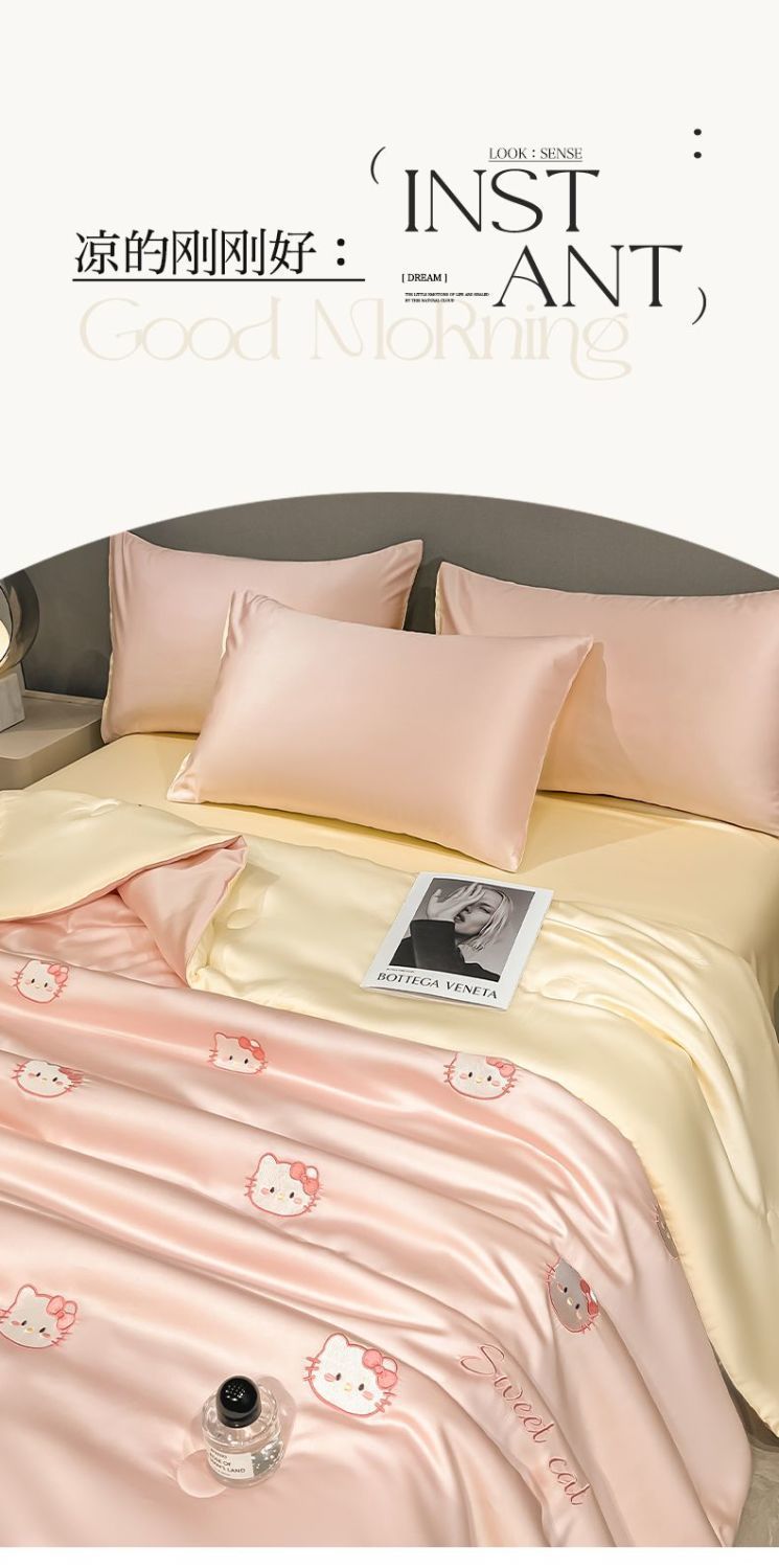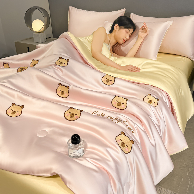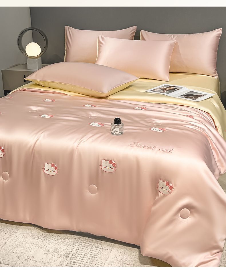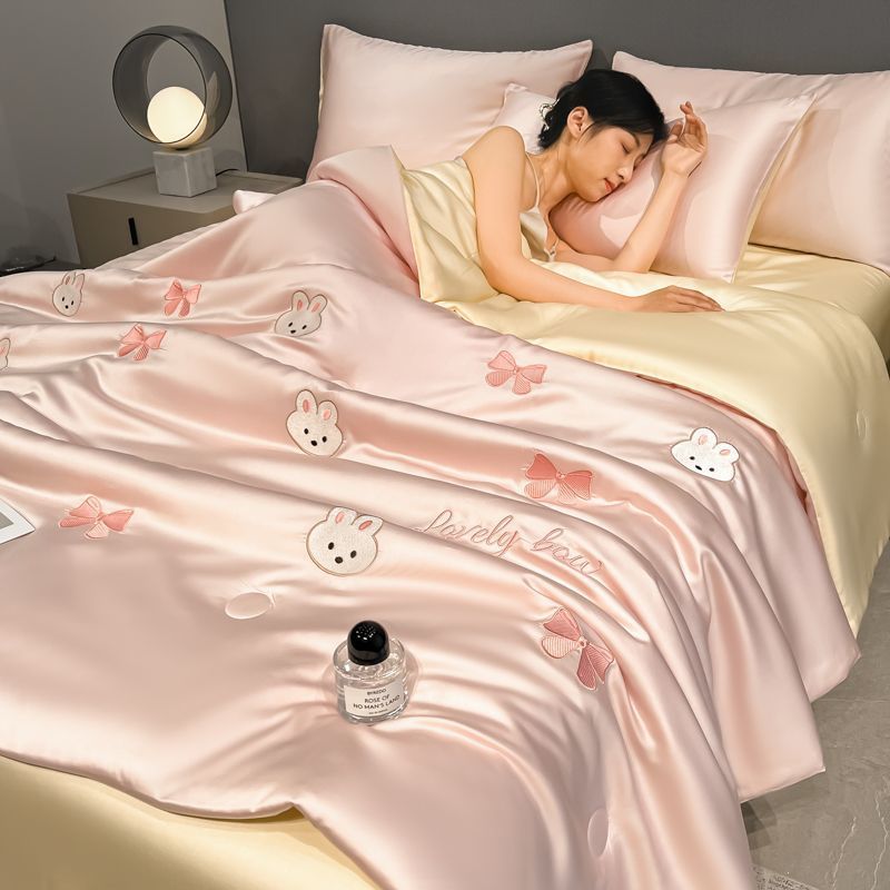 여름 빛 럭셔리 아이스 실크 여름 퀼트 4 피스 세트 세척 실크 자수 여름 시원한 이불 에어컨 이불 기계 세탁기 얇은 이불
