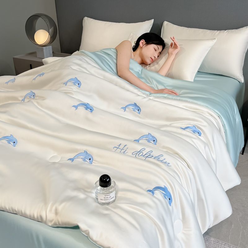 • Little Dolphin-Milk White Blue [워시드 실크, 알몸으로 편안하게 잠들 수 있음]