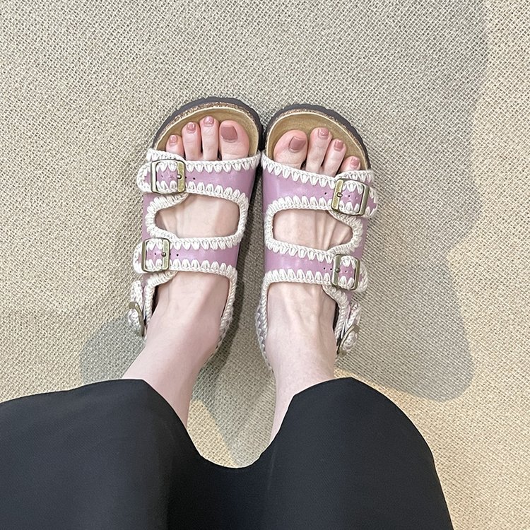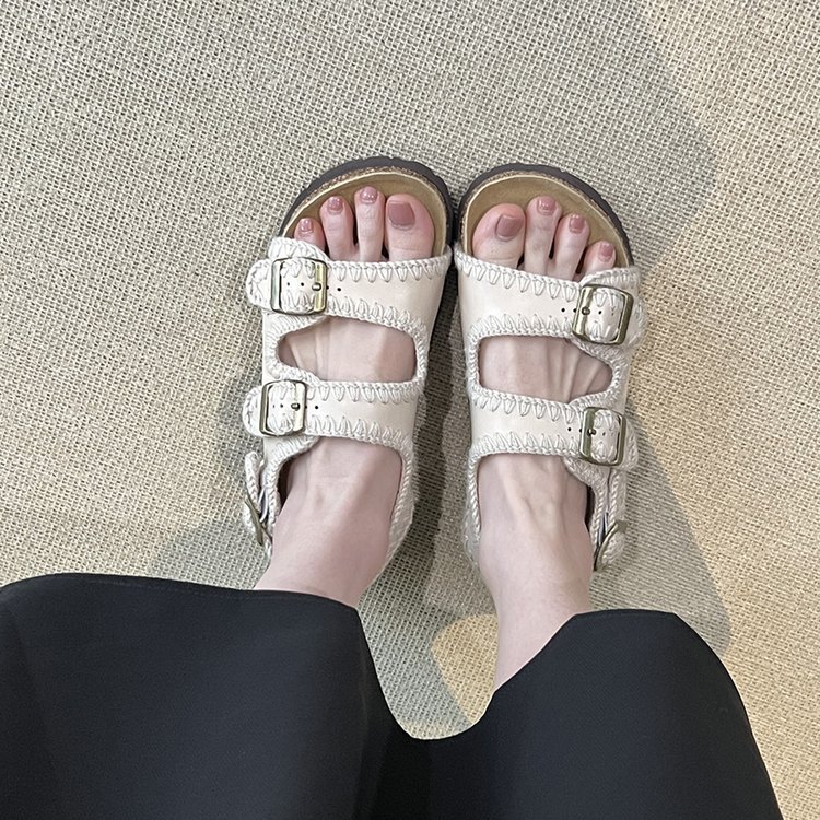부드러운 가죽 버전 ~ 두꺼운 바닥 벨트 버클 버클 신발 캐주얼 오픈 발가락 샌들 여성 의상 비치 홀리데이 로마 샌들