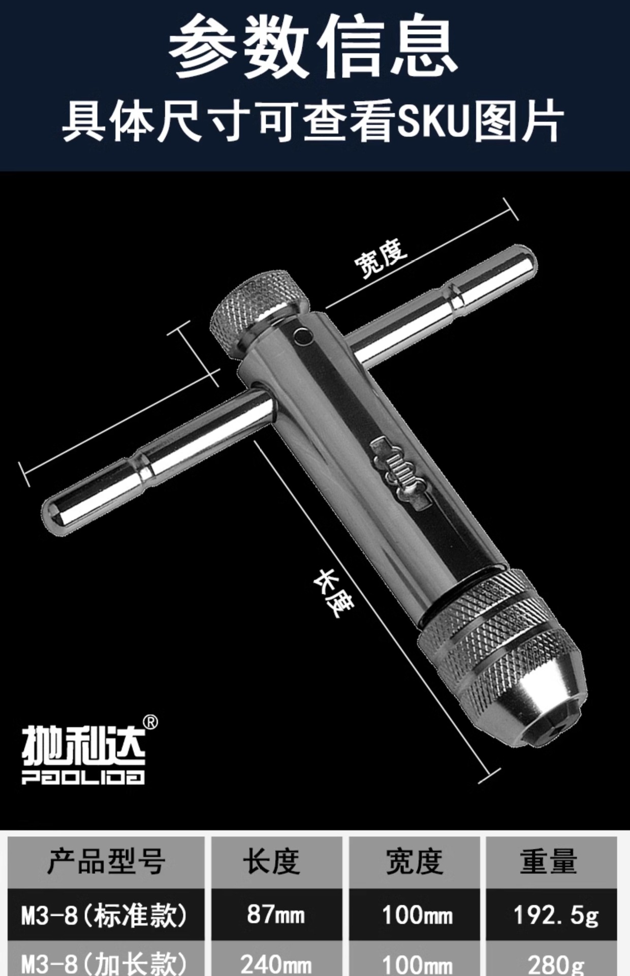 타이거 렌치, 조절식 T형 래칫 탭 렌치, 확장형 수동 탭핑 도구 세트