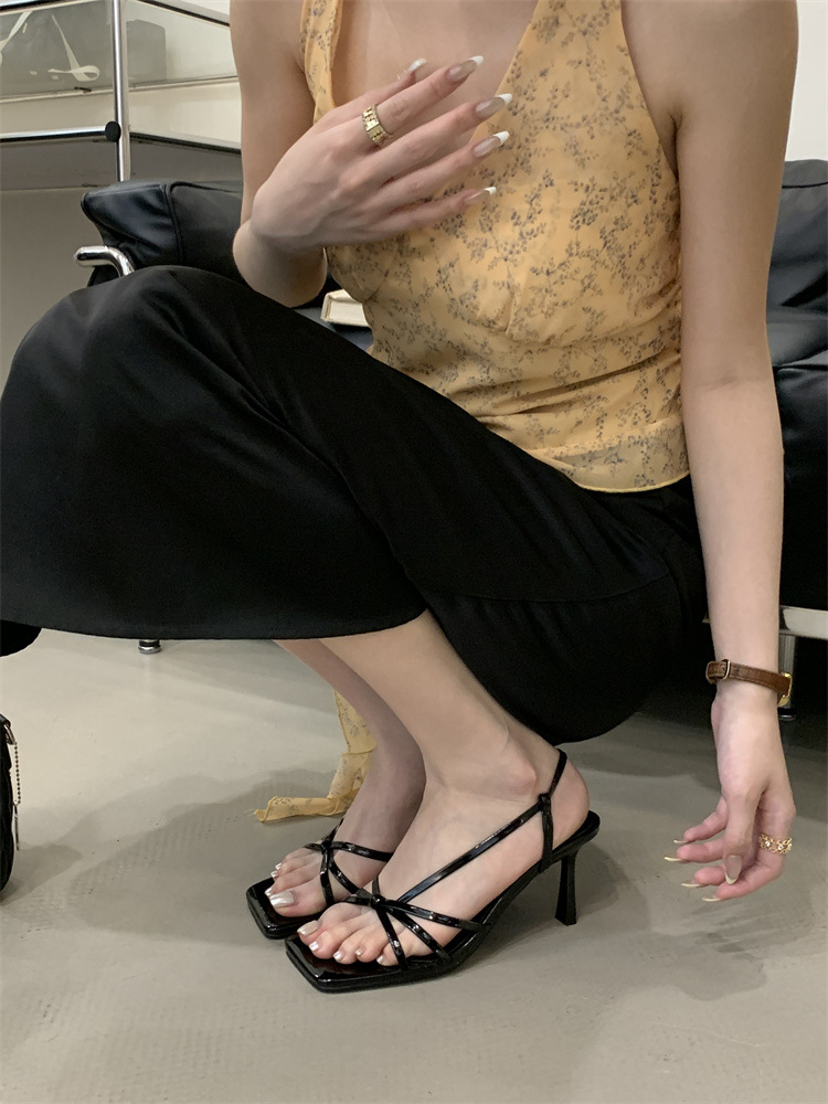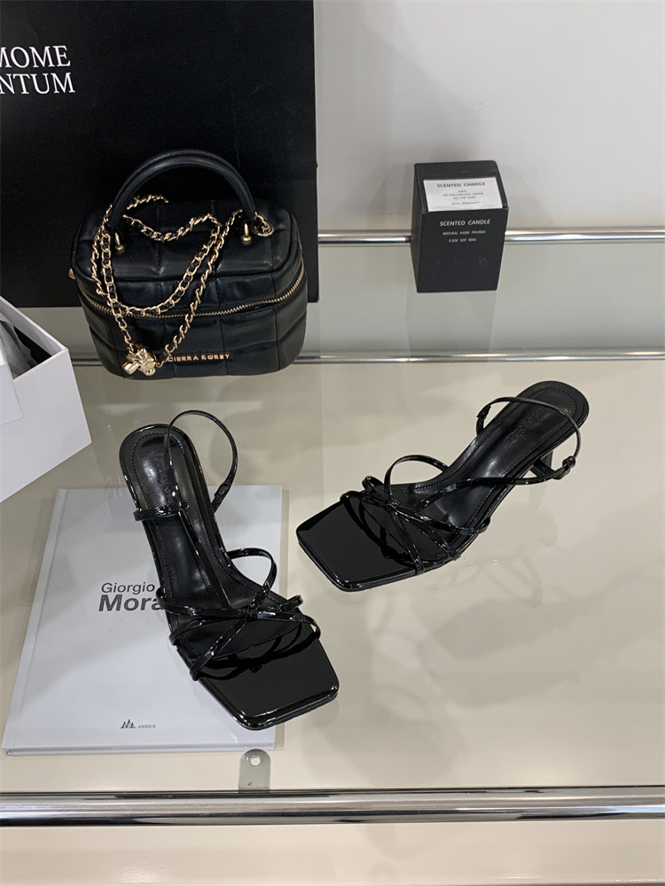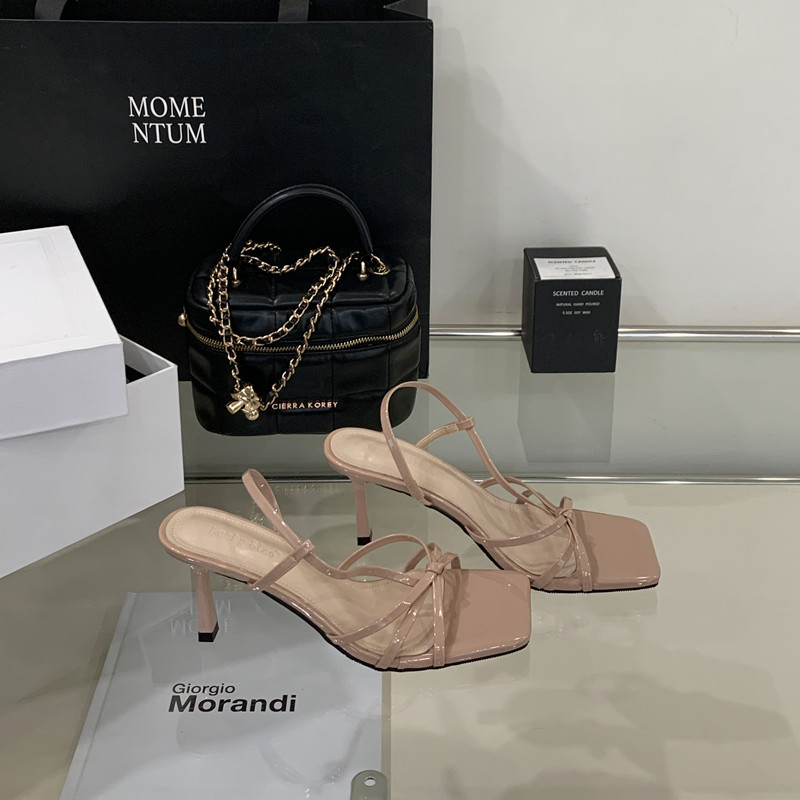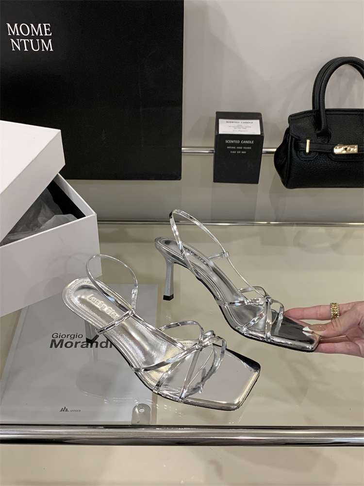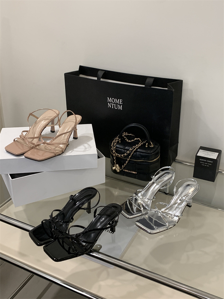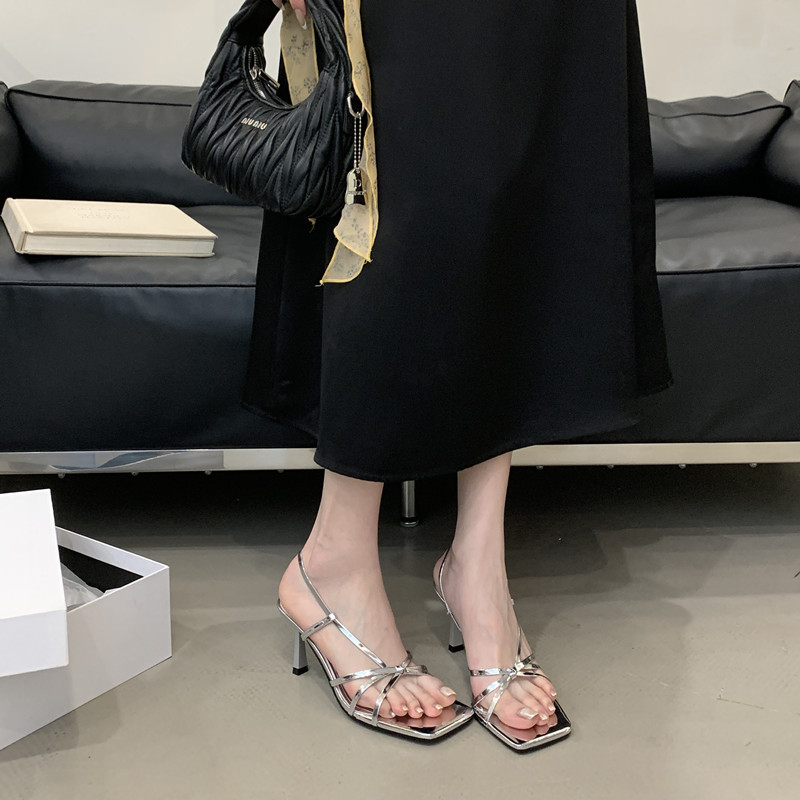 2025년 새로운 여름 패션 스타일 슬림한 스틸레토 스퀘어 토 하이힐 틈새 디자인 누드 컬러 오픈 토 샌들스토어 가기