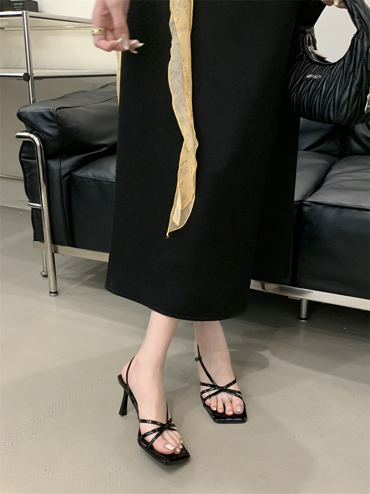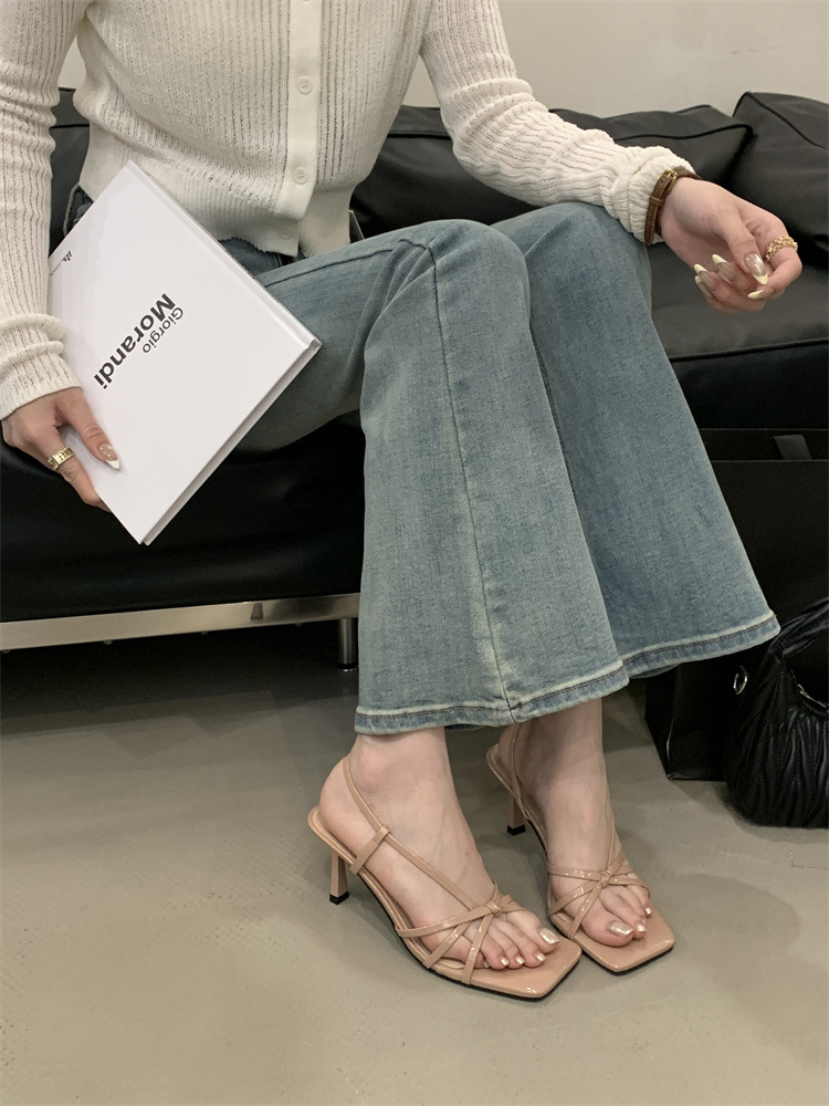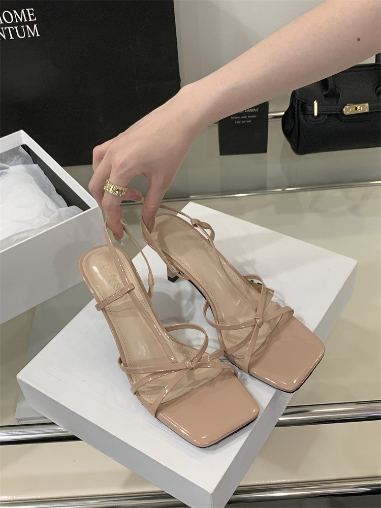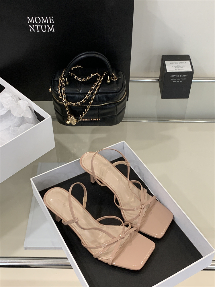 2025년 새로운 여름 패션 스타일 슬림한 스틸레토 스퀘어 토 하이힐 틈새 디자인 누드 컬러 오픈 토 샌들