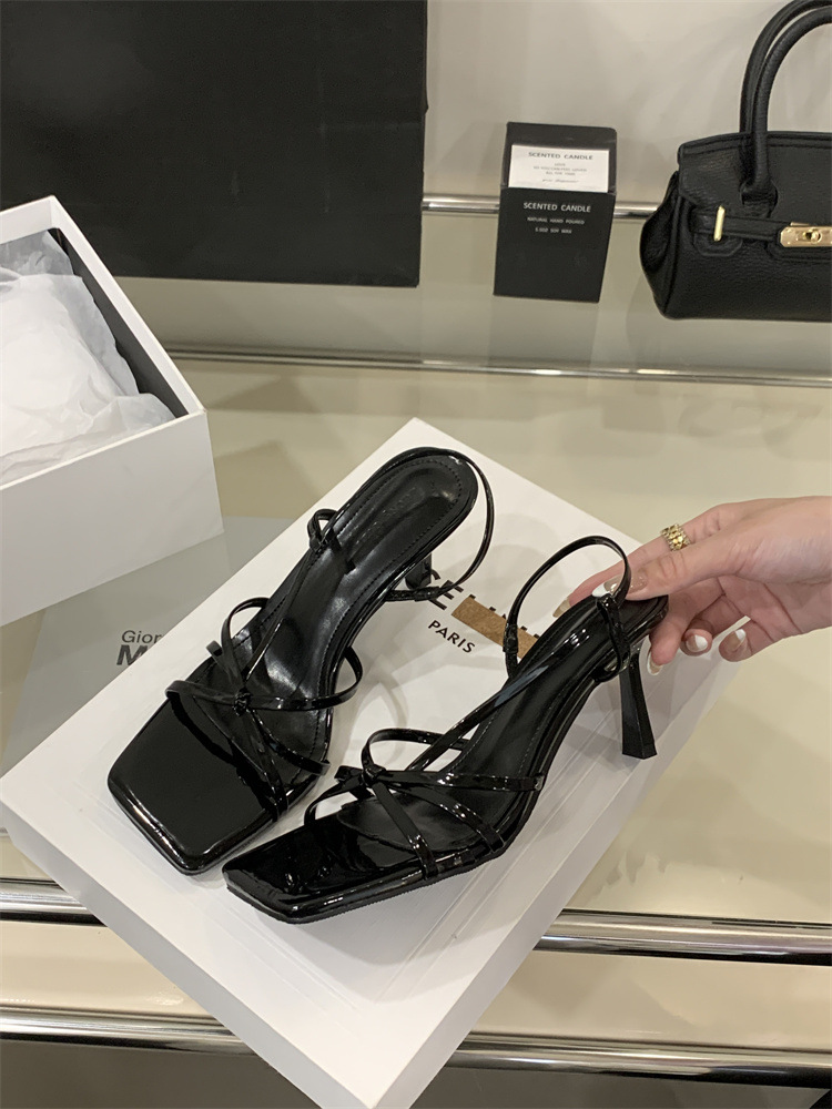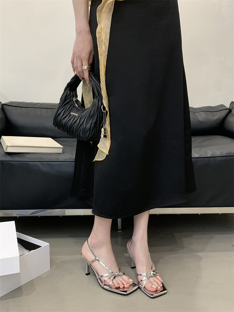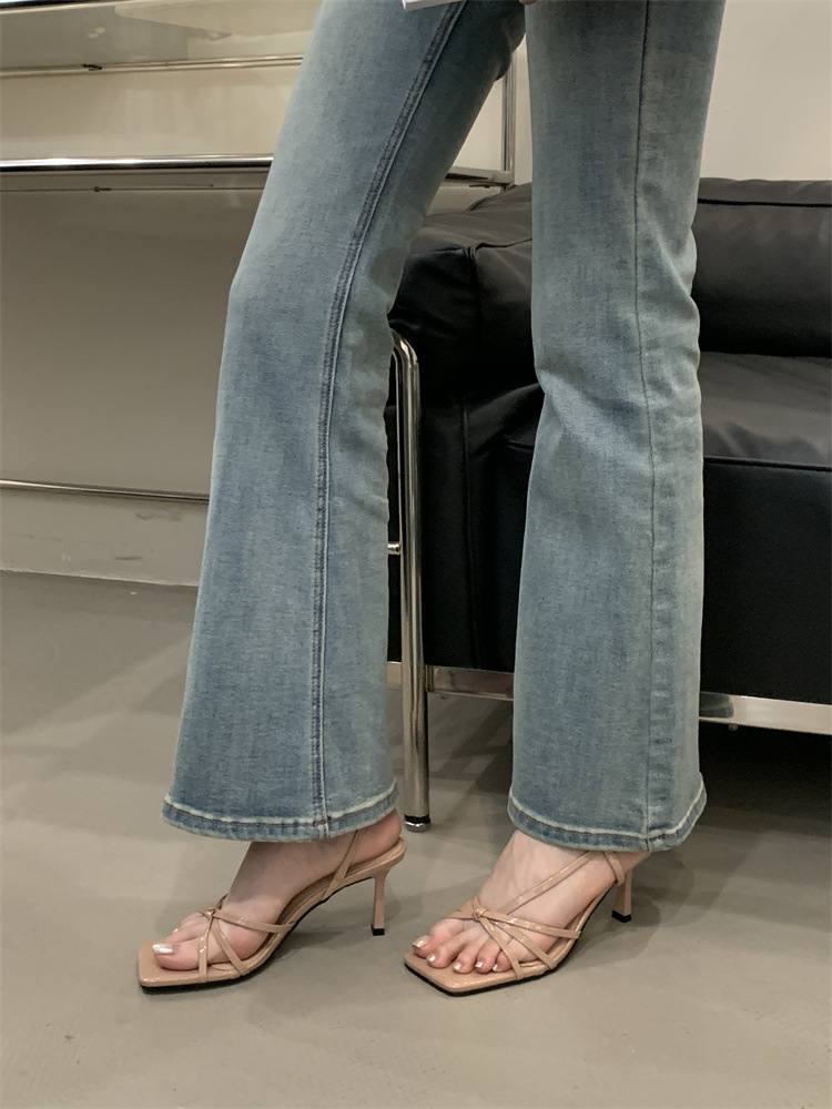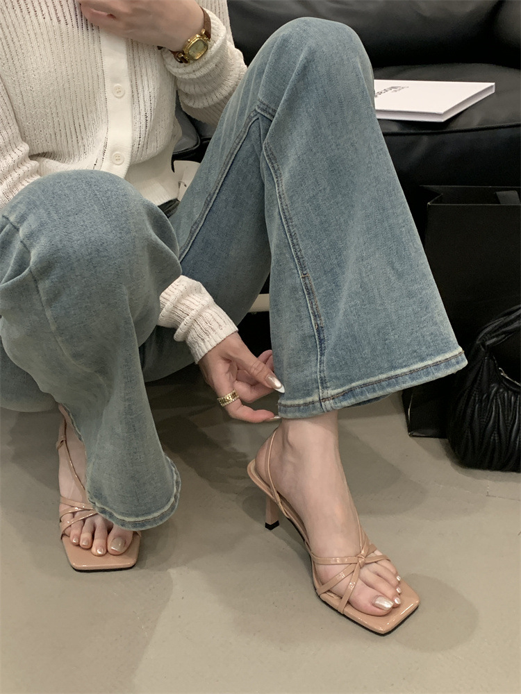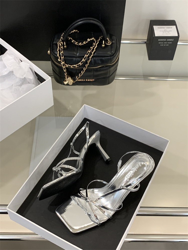 2025년 새로운 여름 패션 스타일 슬림한 스틸레토 스퀘어 토 하이힐 틈새 디자인 누드 컬러 오픈 토 샌들
