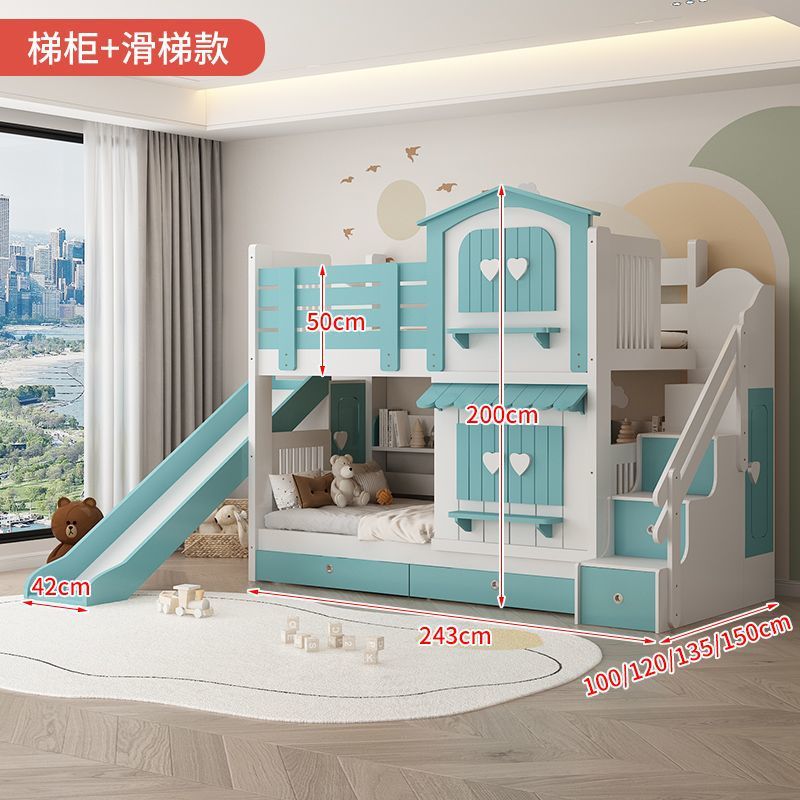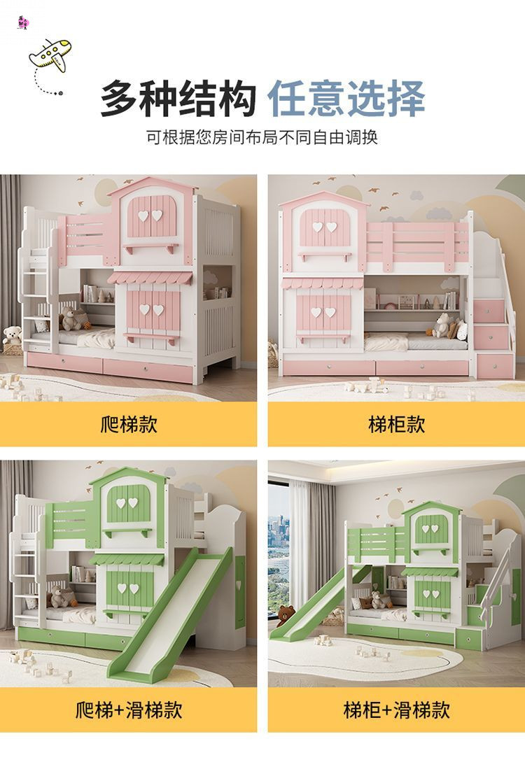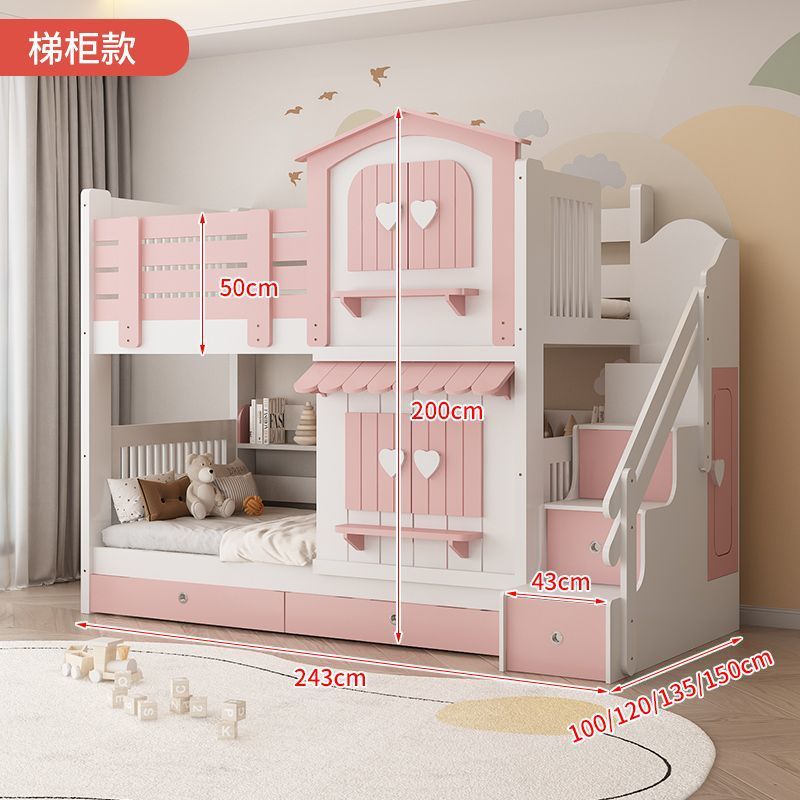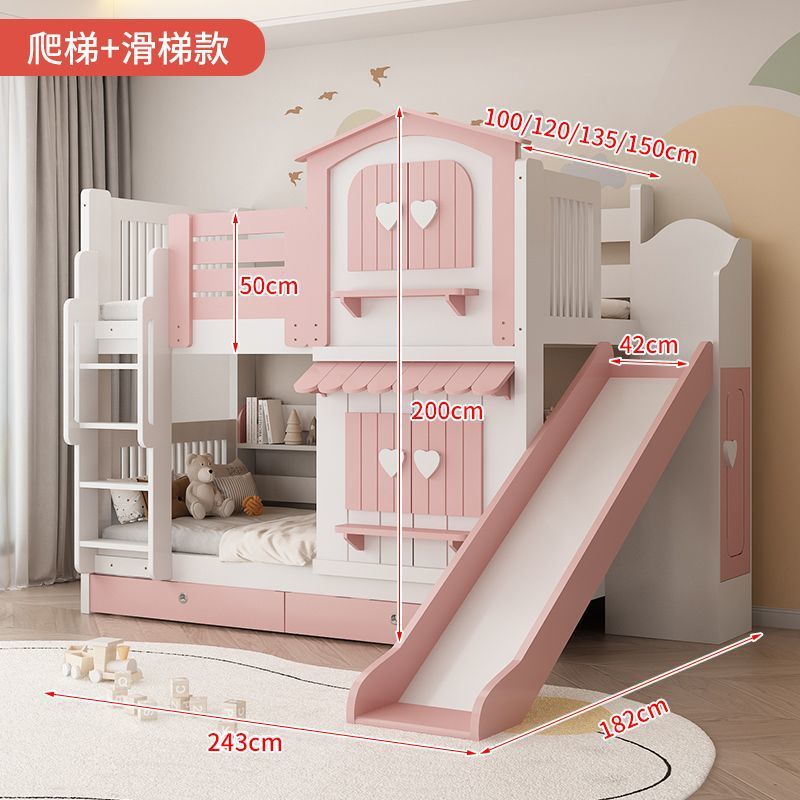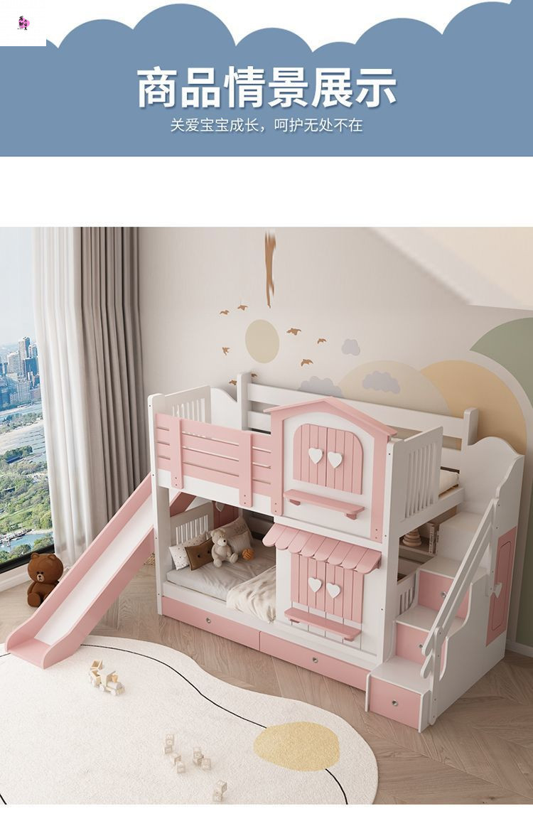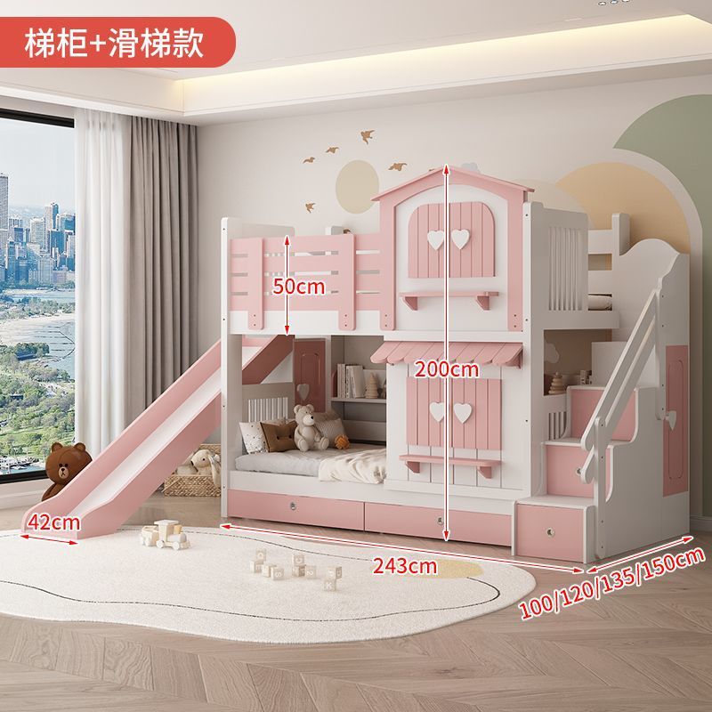 어린이 침대 소녀 이층 침대 2층 공주 스타일 성 침대 슬라이드 침대 다기능 어린이 침대 2층 이층 침대