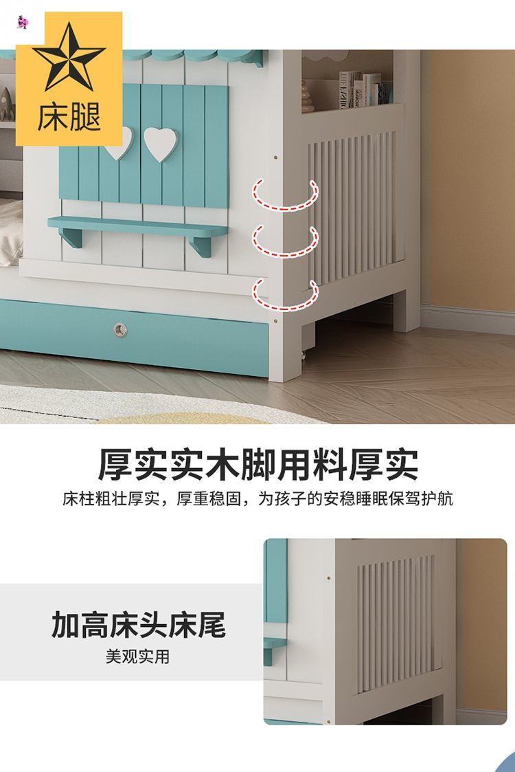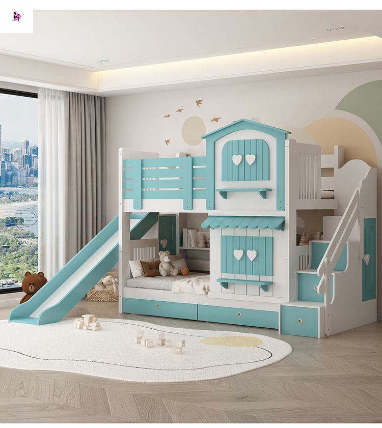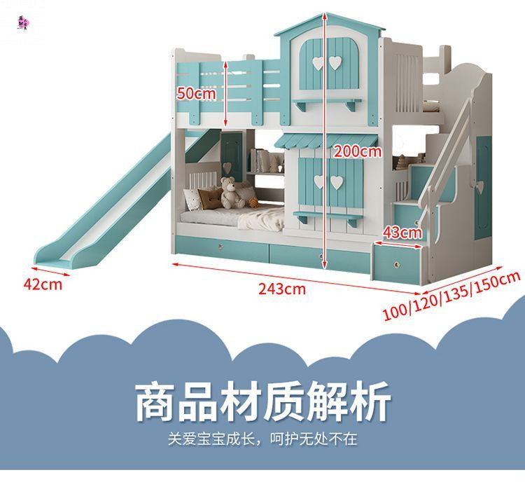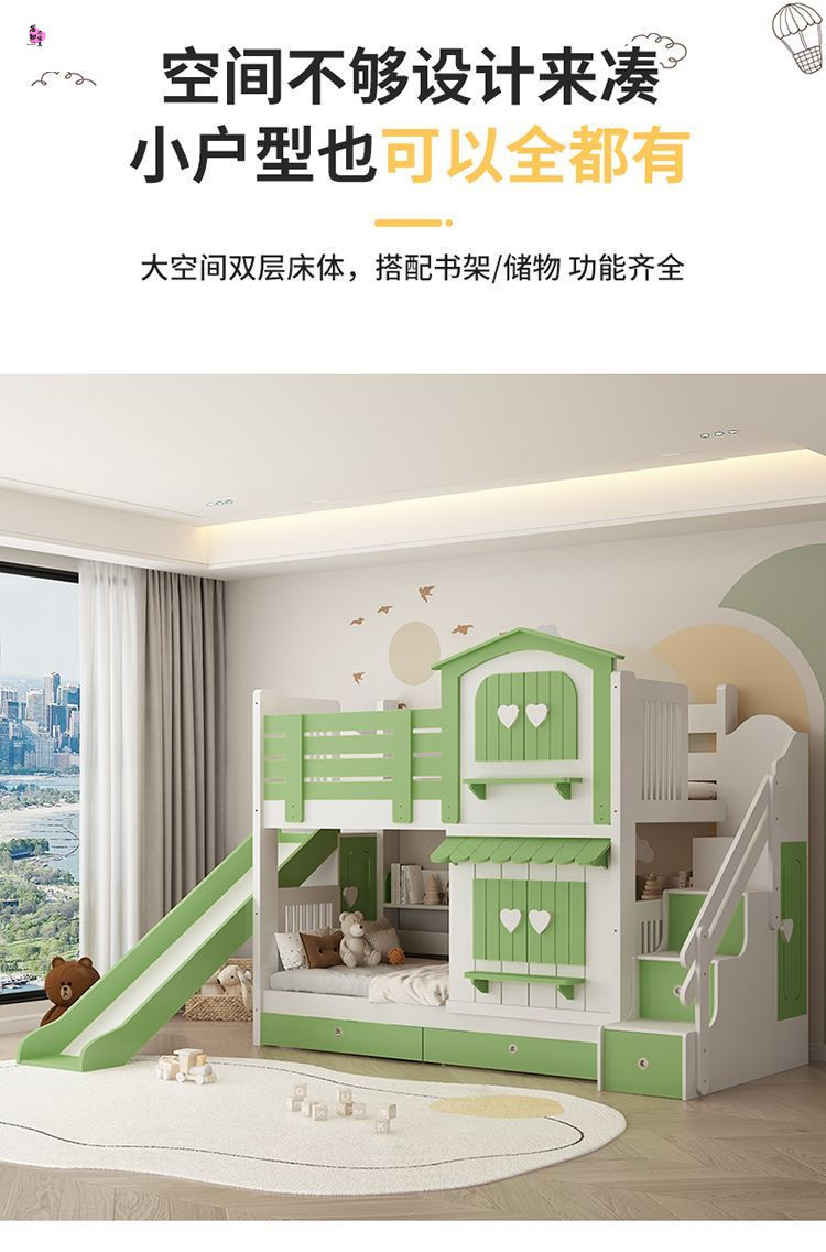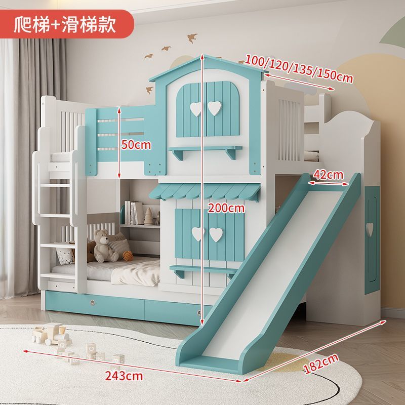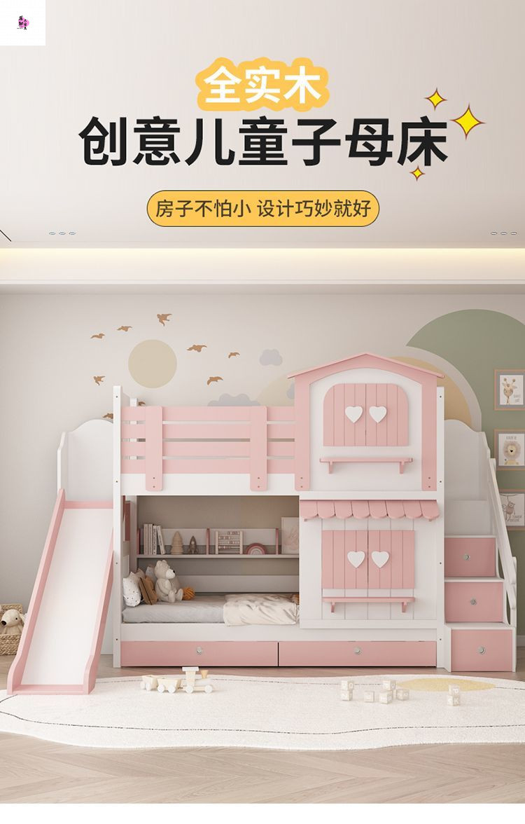 어린이 침대 소녀 이층 침대 2층 공주 스타일 성 침대 슬라이드 침대 다기능 어린이 침대 2층 이층 침대