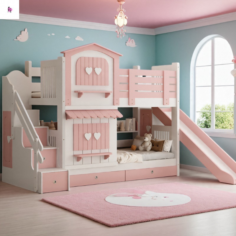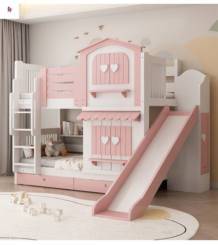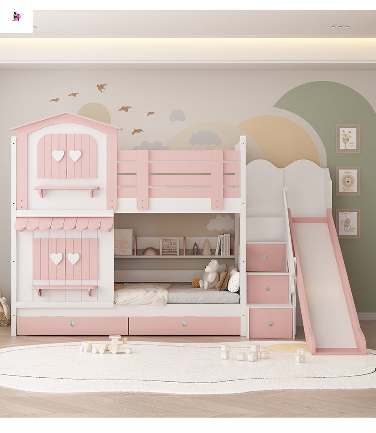 • 핑크 화이트 + 사다리 캐비닛 + 슬라이드 + 패키지 설치 + 무료 매트리스