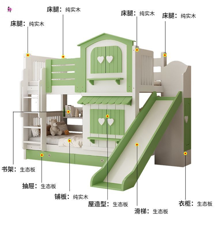 • 그린 앤 화이트 + 사다리 캐비닛 + 슬라이드 + 패키지 설치 + 무료 매트리스