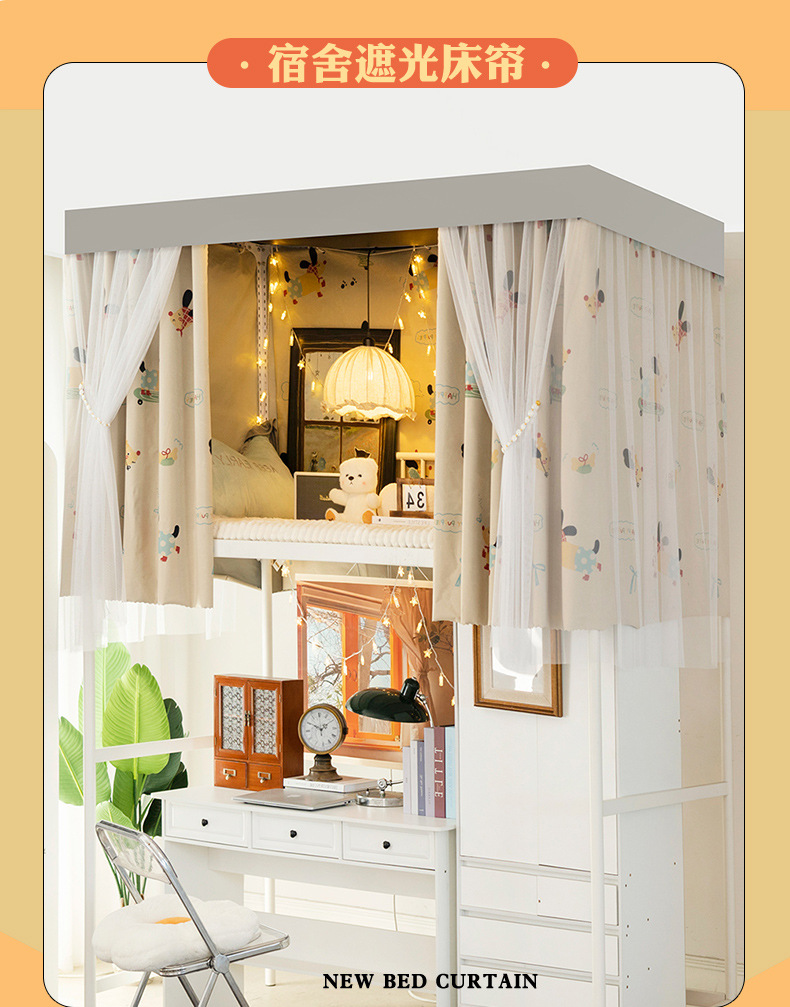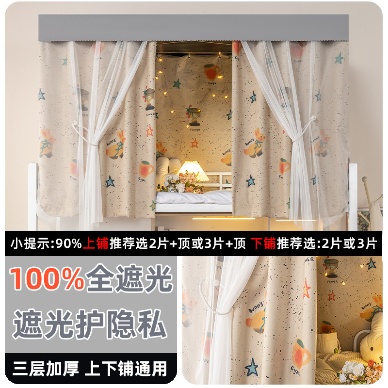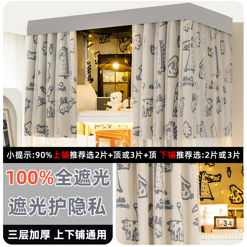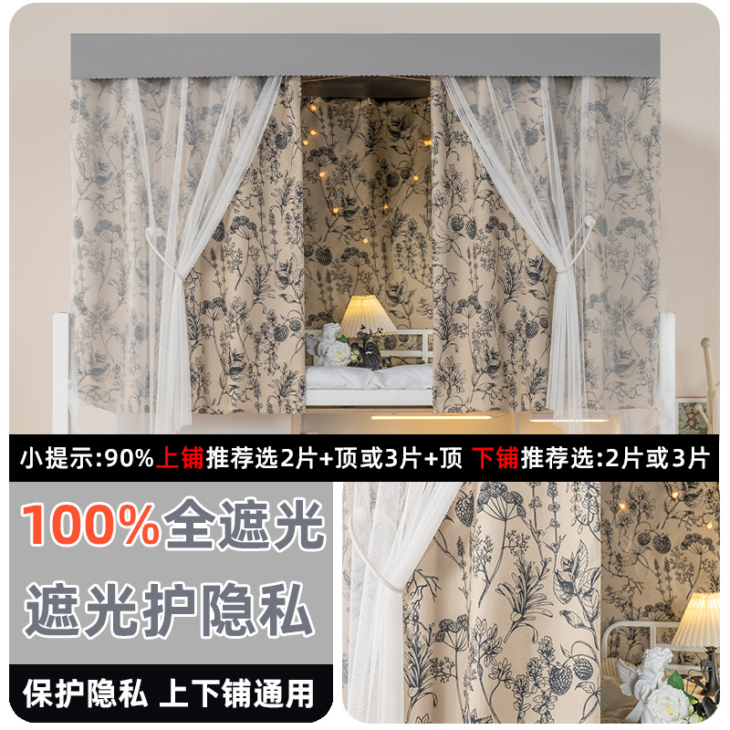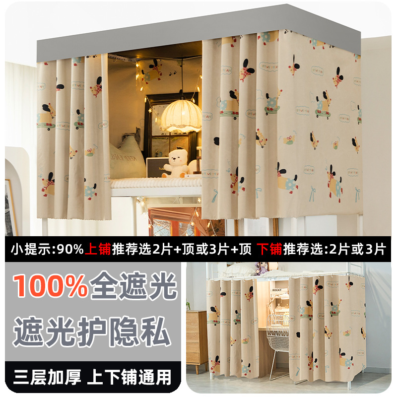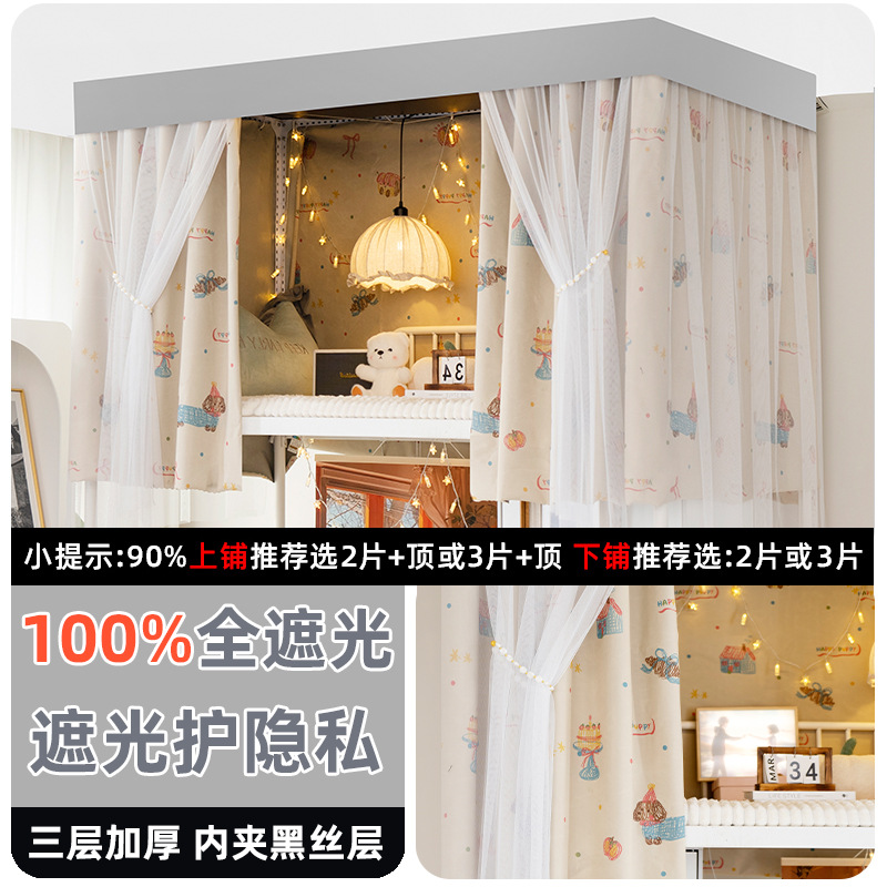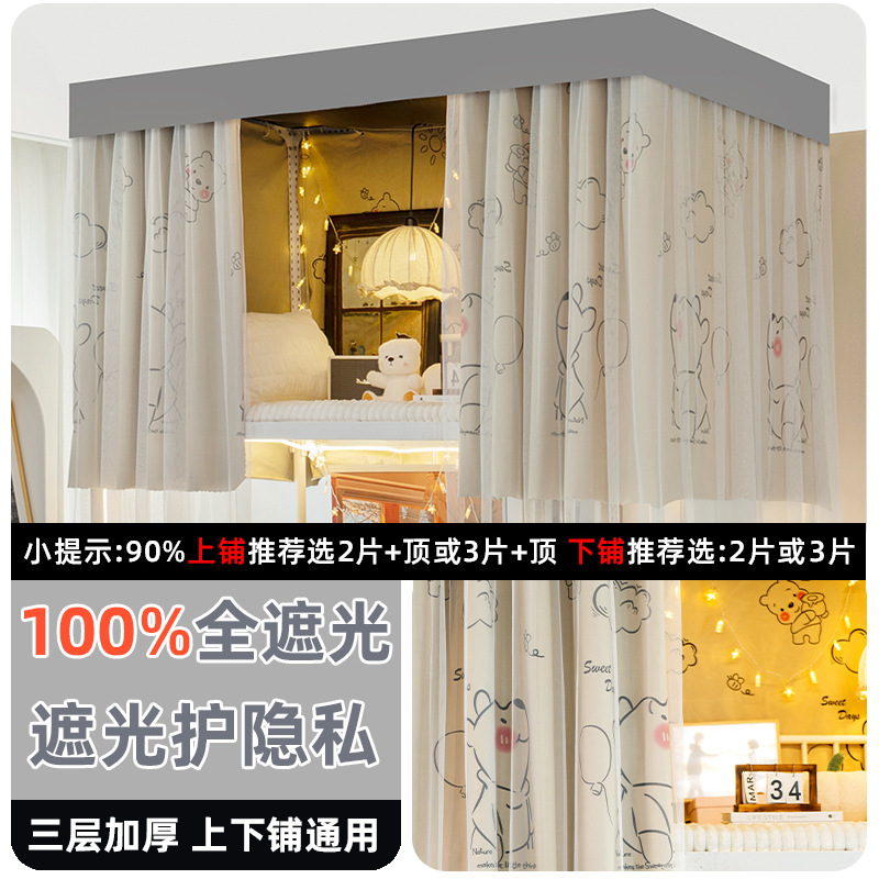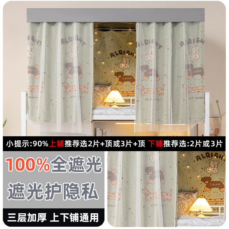 학생 기숙사 전체 차광 침대 커튼, 이층 침대용 특수 코팅되지 않은 침대 커튼, 기숙사 하단 침대 일체형 차단 커튼스토어 가기