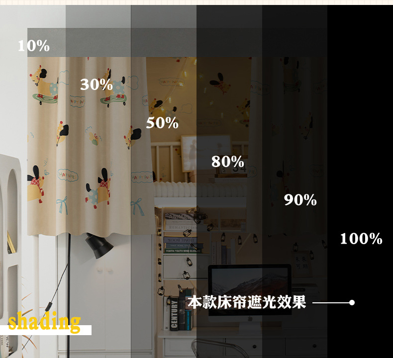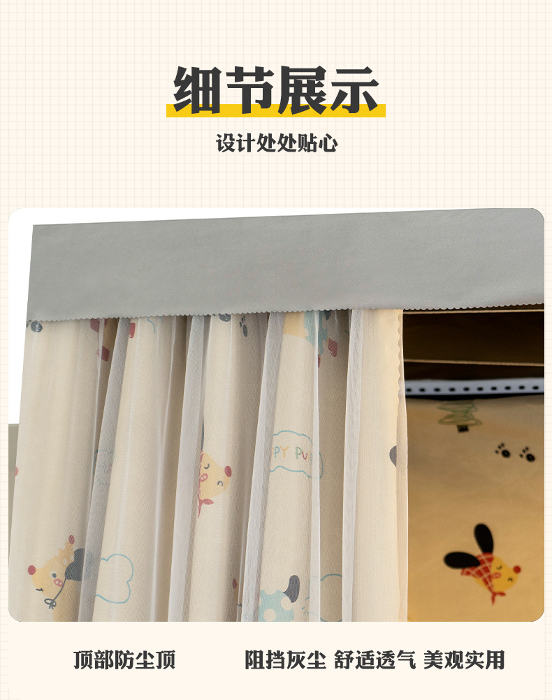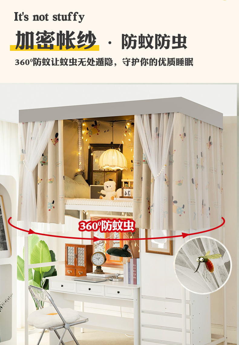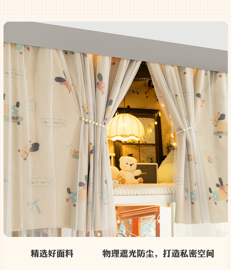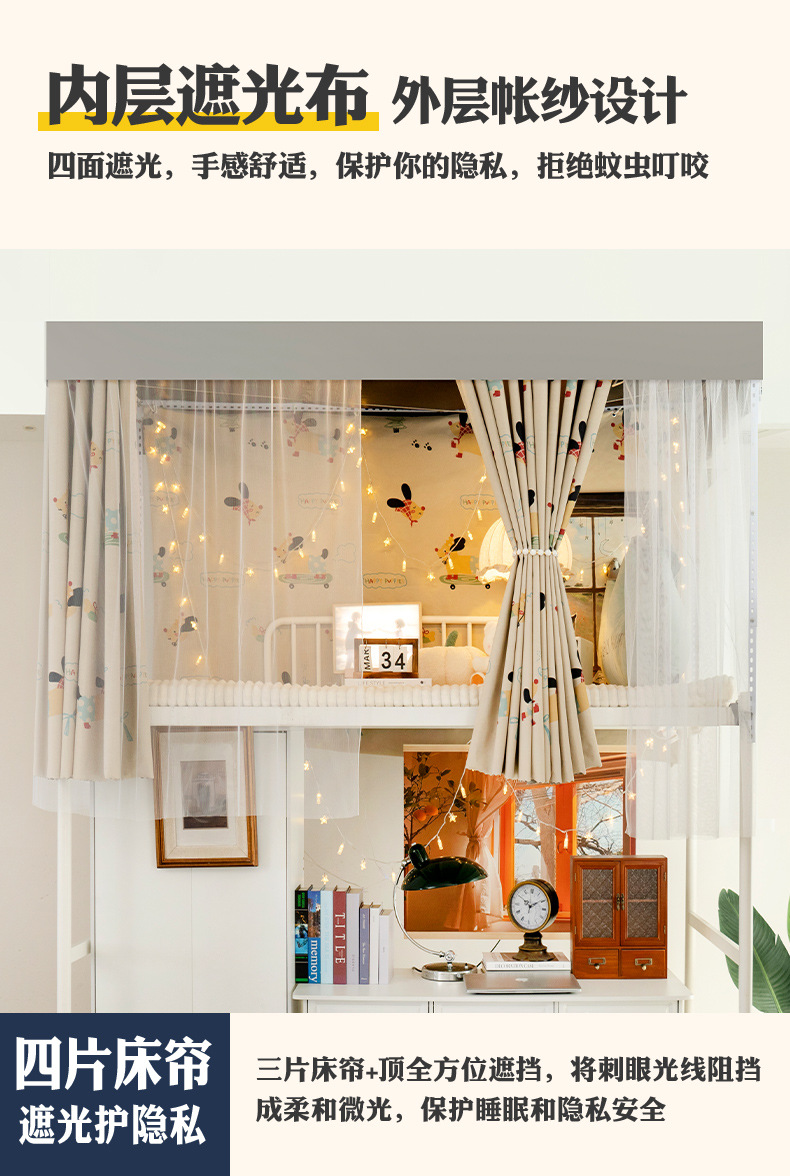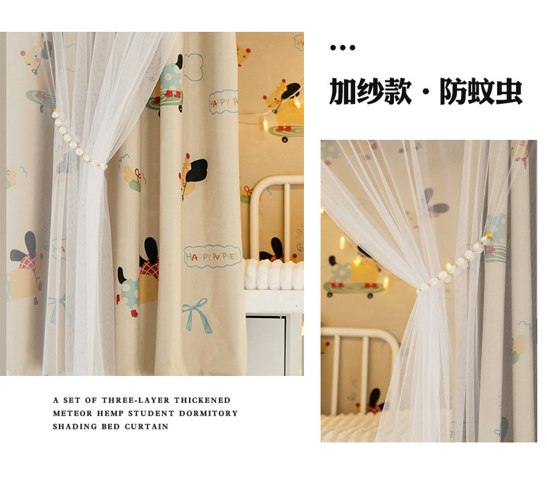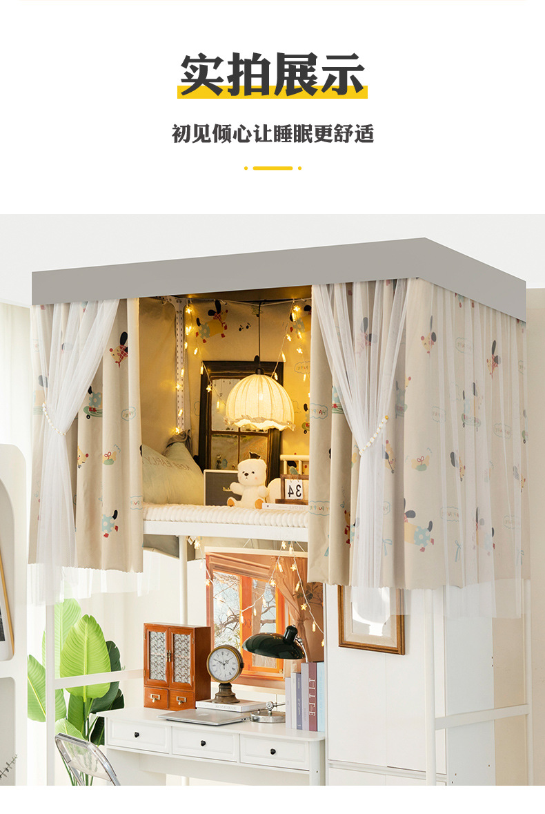 학생 기숙사 전체 차광 침대 커튼, 이층 침대용 특수 코팅되지 않은 침대 커튼, 기숙사 하단 침대 일체형 차단 커튼스토어 가기