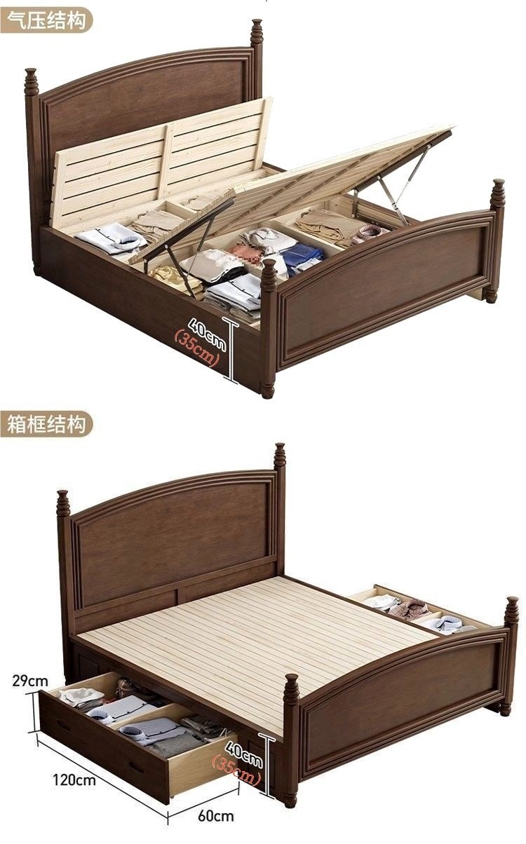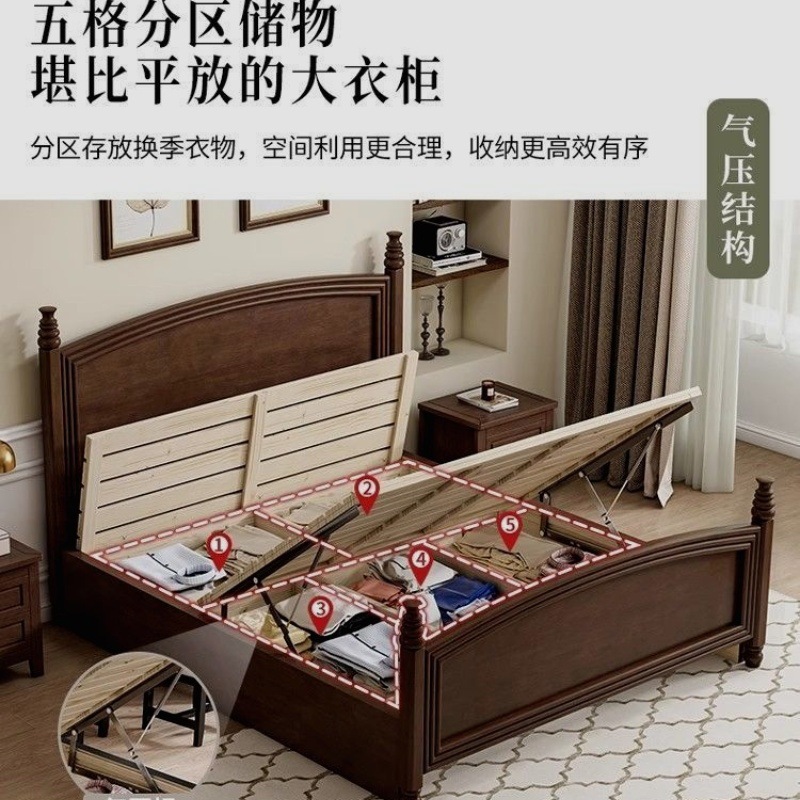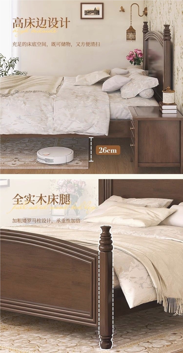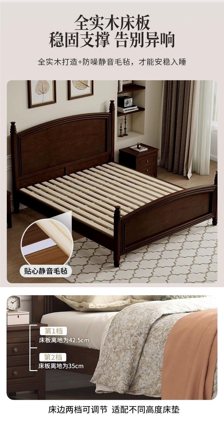 심플한 스타일의 컨트리 아메리칸 원목 침대, 모던하고 심플한 1.8M 더블 침대, 레트로 프렌치 침대, 라이트 럭셔리 웨딩 침대, 마스터 침실