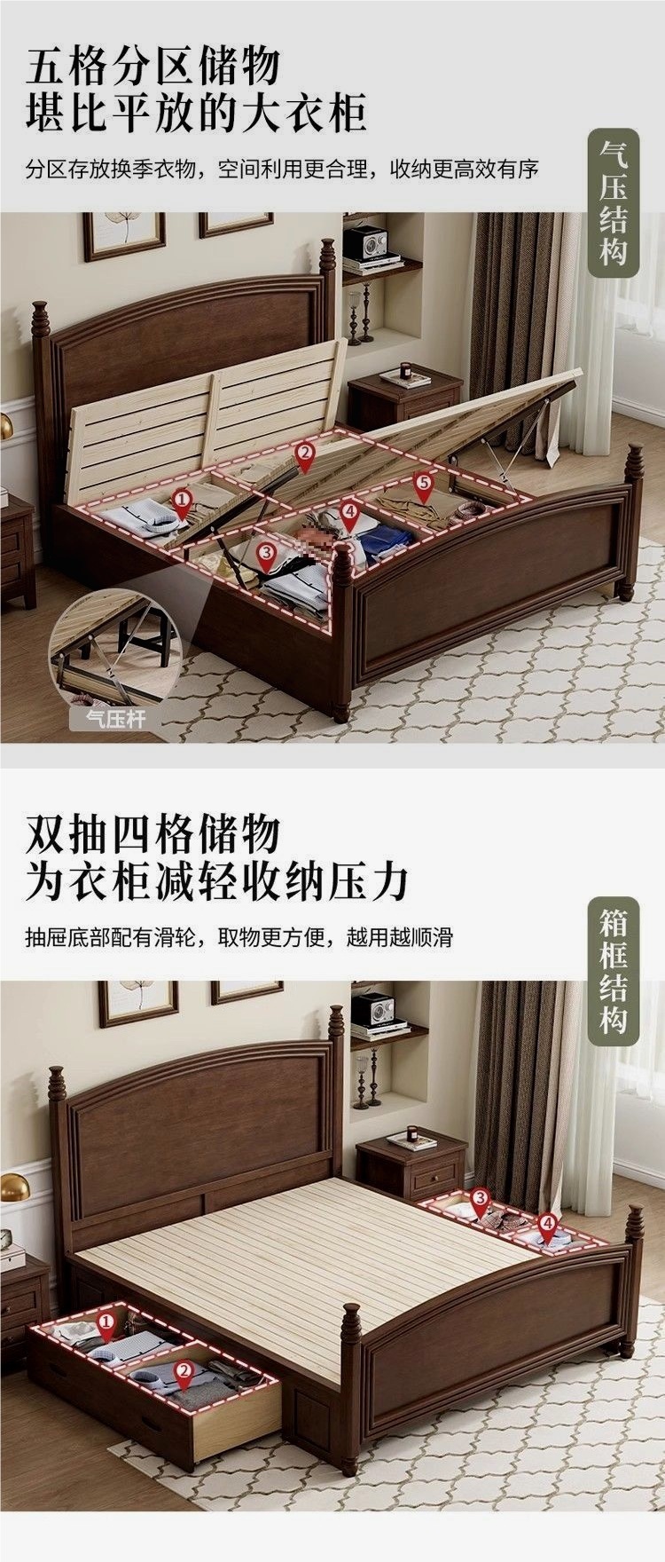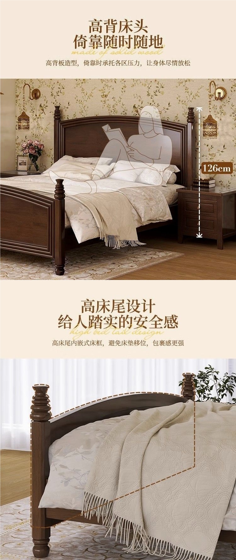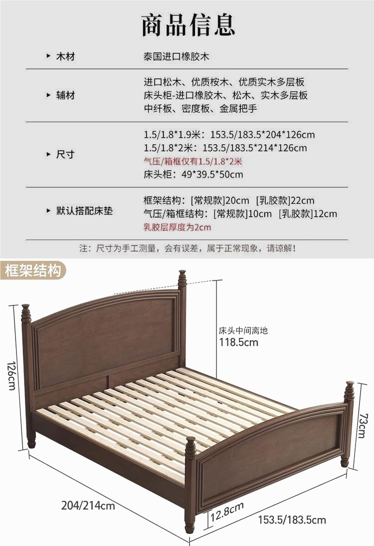 심플한 스타일의 컨트리 아메리칸 원목 침대, 모던하고 심플한 1.8M 더블 침대, 레트로 프렌치 침대, 라이트 럭셔리 웨딩 침대, 마스터 침실