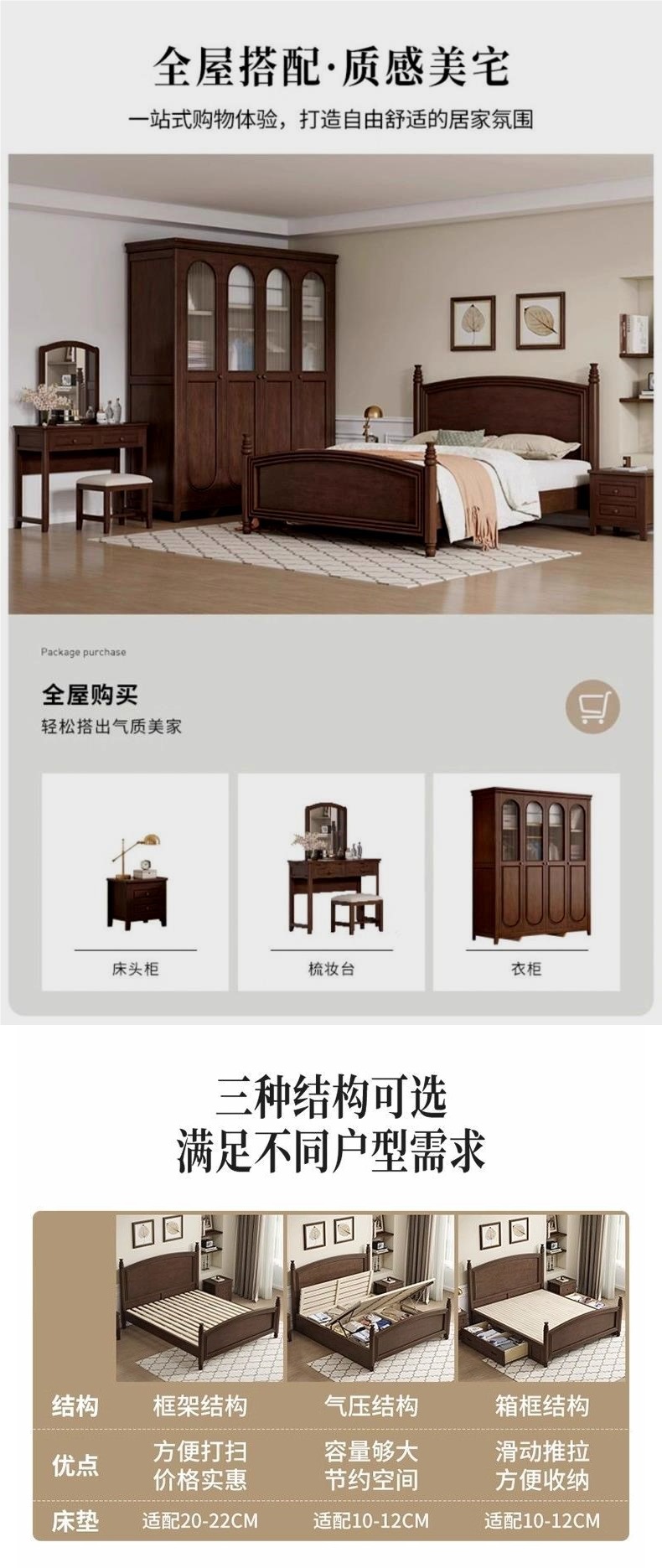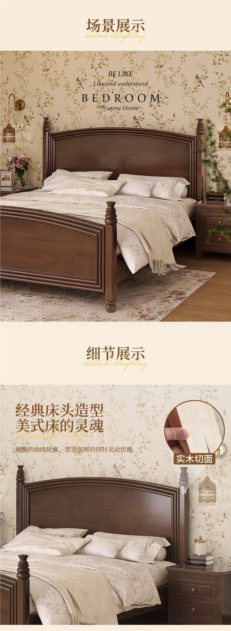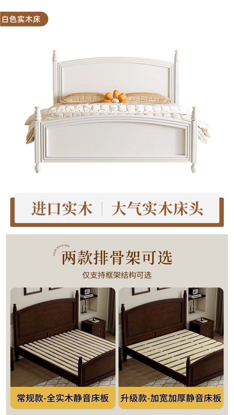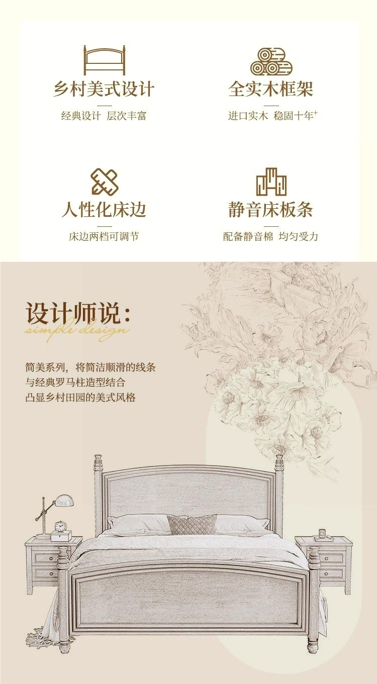 심플한 스타일의 컨트리 아메리칸 원목 침대, 모던하고 심플한 1.8M 더블 침대, 레트로 프렌치 침대, 라이트 럭셔리 웨딩 침대, 마스터 침실스토어 가기
