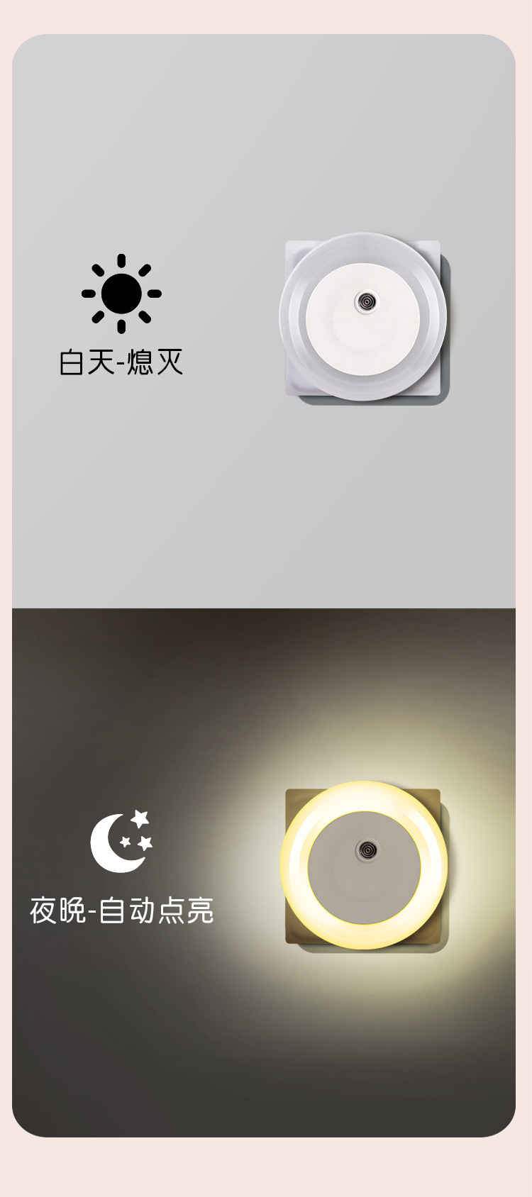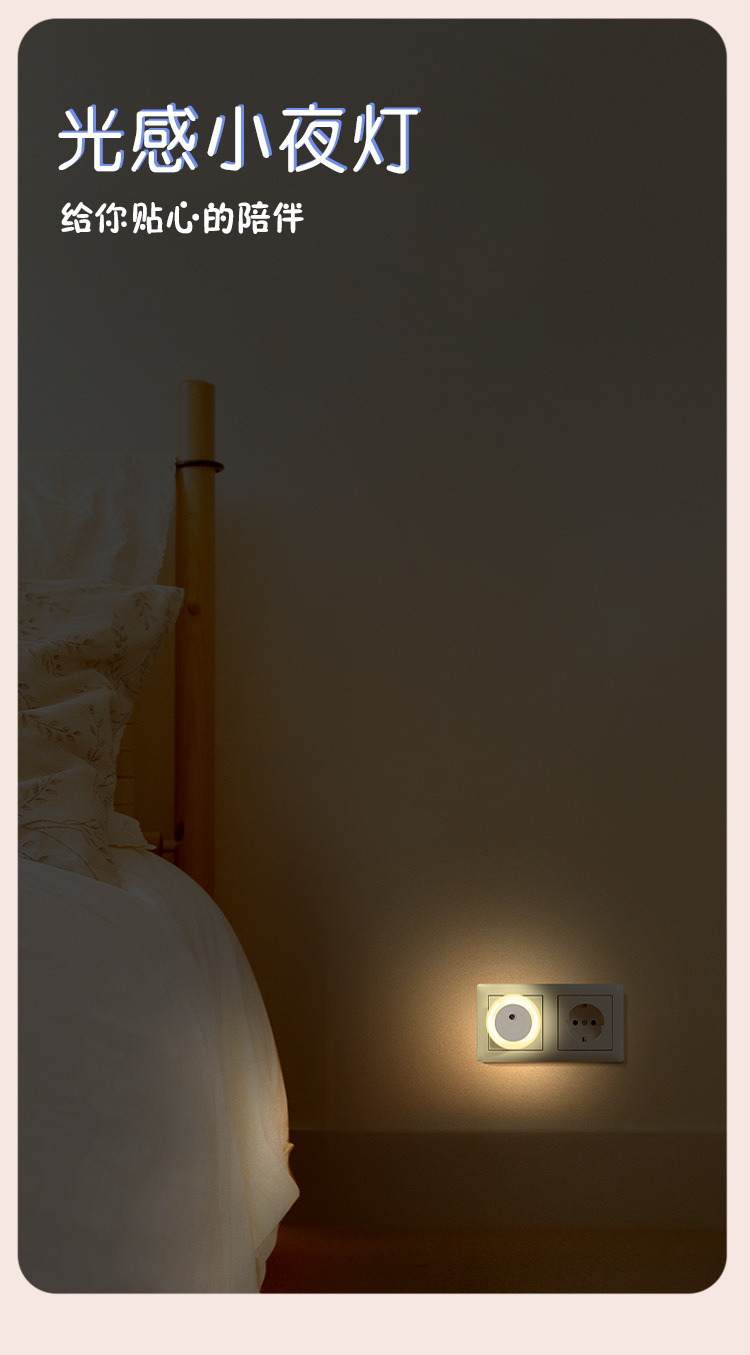 야간 자동 밝기 및 밝기 없는 따뜻한 백색광 제어 센서 라이트 플러그인 야간 조명 EU 플러그인 야간 조명스토어 가기