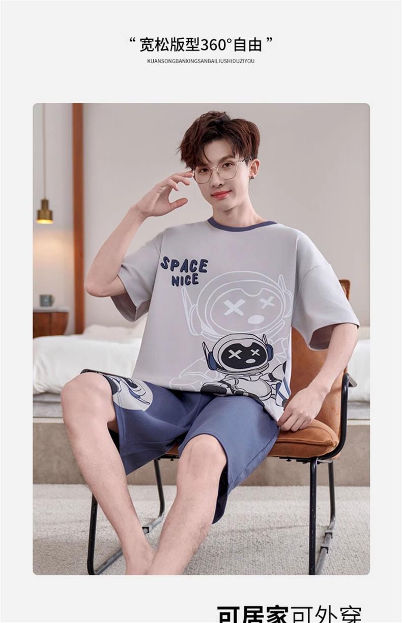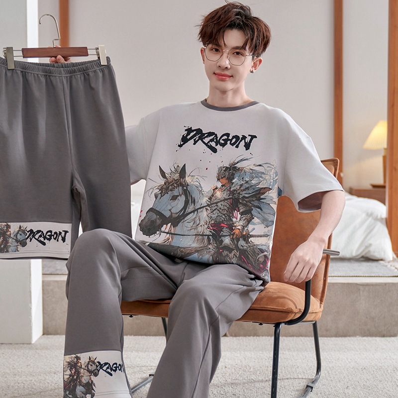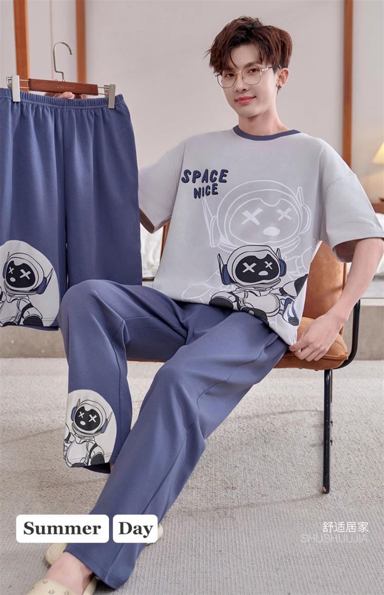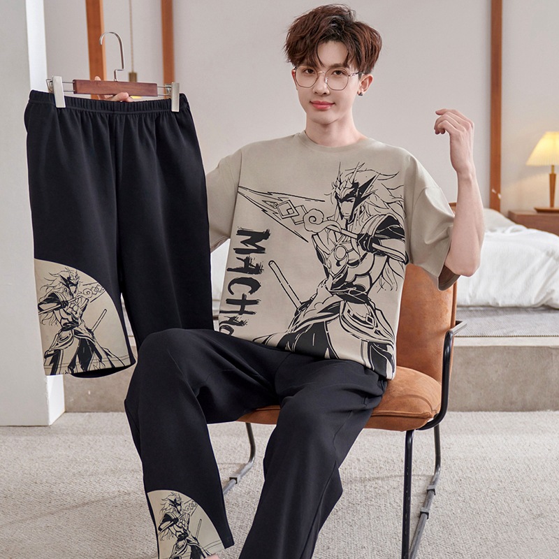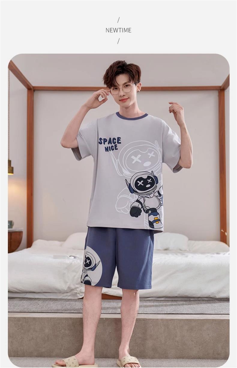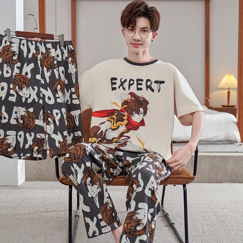남성용 여름 잠옷, 순면, 얇은 반팔 바지, 가을 만화 청소년 남성용 3피스 슈트, 홈웨어스토어 가기