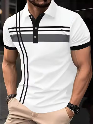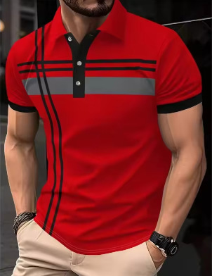 패션 3D 인쇄 컬러 스트라이프 남성 폴로 셔츠 패턴 반팔 티셔츠 스포츠 캐주얼 옷깃 탑 반팔