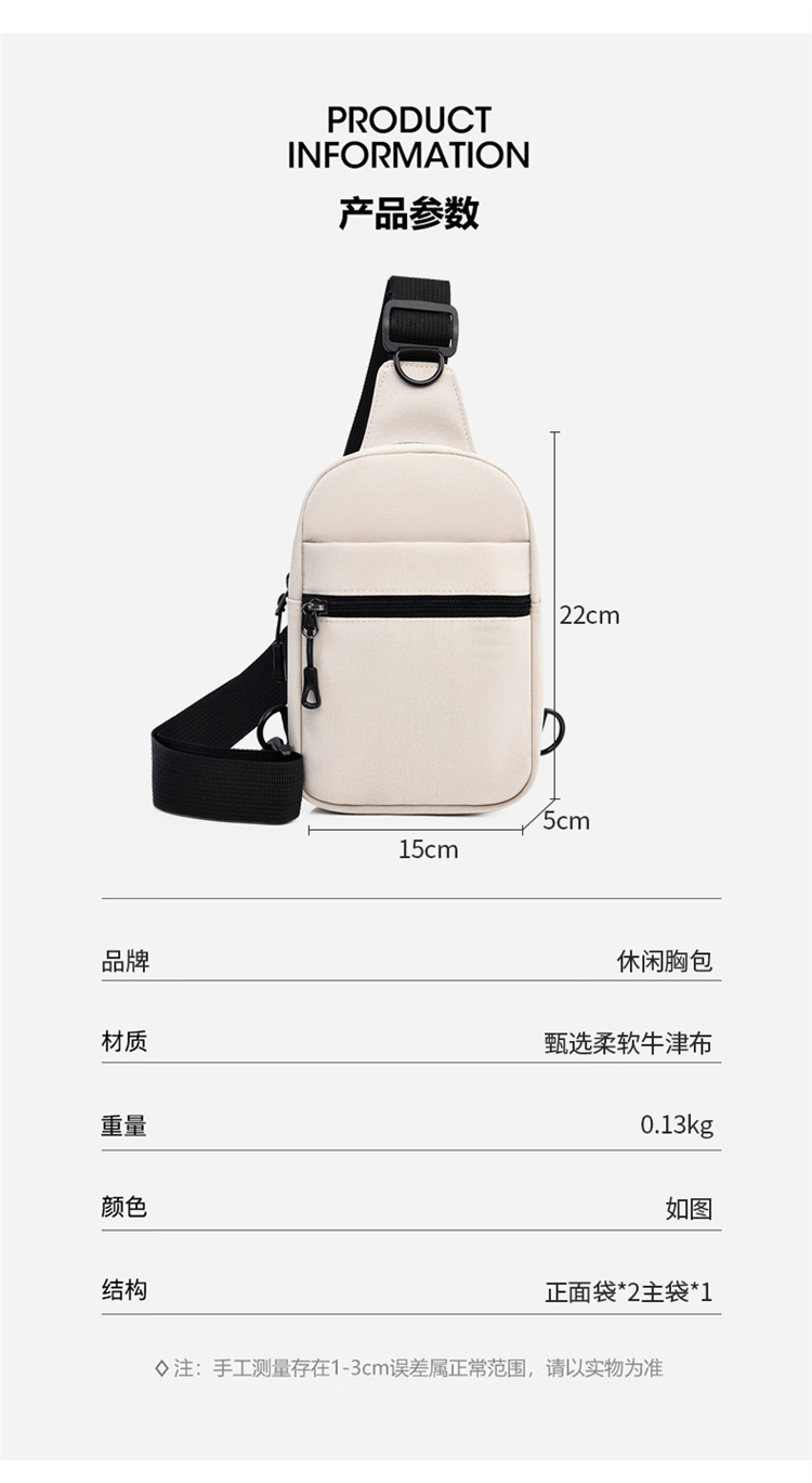 공장 도매 인쇄 가능한 로고 간단한 패션 가슴 가방 대용량 캐주얼 크로스 바디 백 솔리드 컬러 옥스포드 천 숄더 백