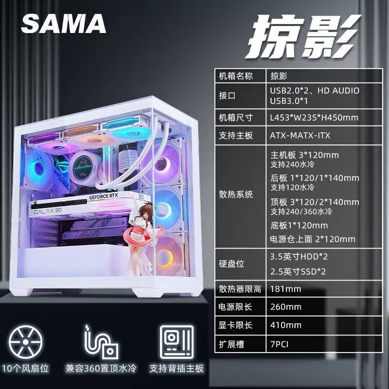 SAMA 스카치 바다 전망 룸 데스크탑 컴퓨터 메인 케이스 비즈니스 오피스 게임 360 수냉식