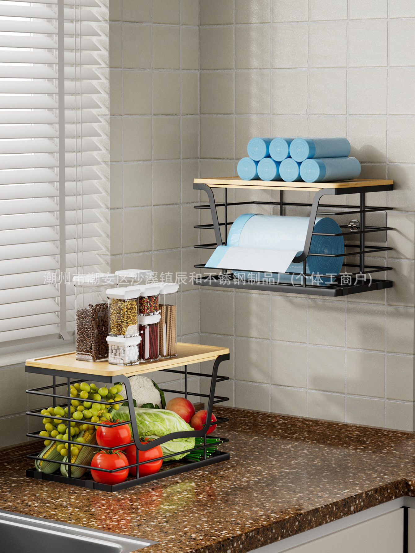 데스크탑 스토리지 랙 가정용 쓰레기 봉투 수건 스토리지 랙 다기능 홈 가구 벽걸이 스토리지스토어 가기