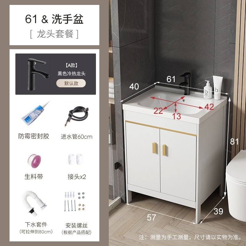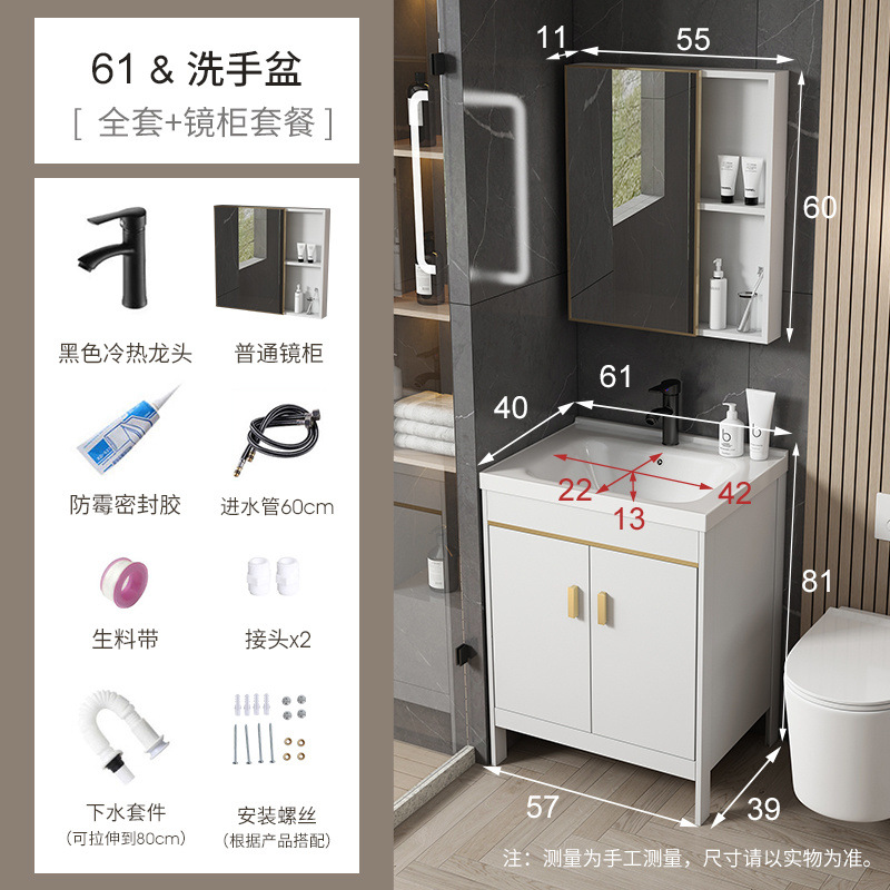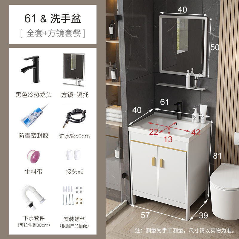 • 흰색-61*40 캐비닛 세면대 + 하드웨어 전체 세트 + 거울