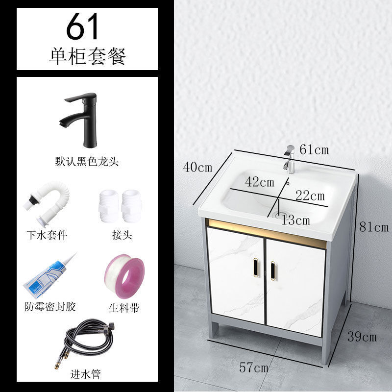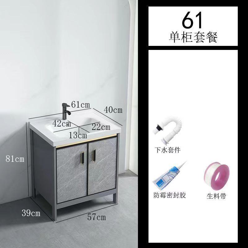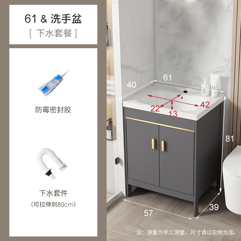 • 라이트 럭셔리 그레이-61*40 캐비닛 세면대 + 하드웨어 전체 세트