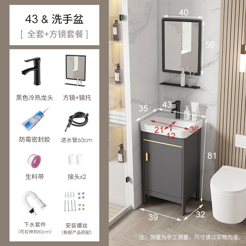 • 회색-43*35 캐비닛 세면대 + 하드웨어 전체 세트 + 거울