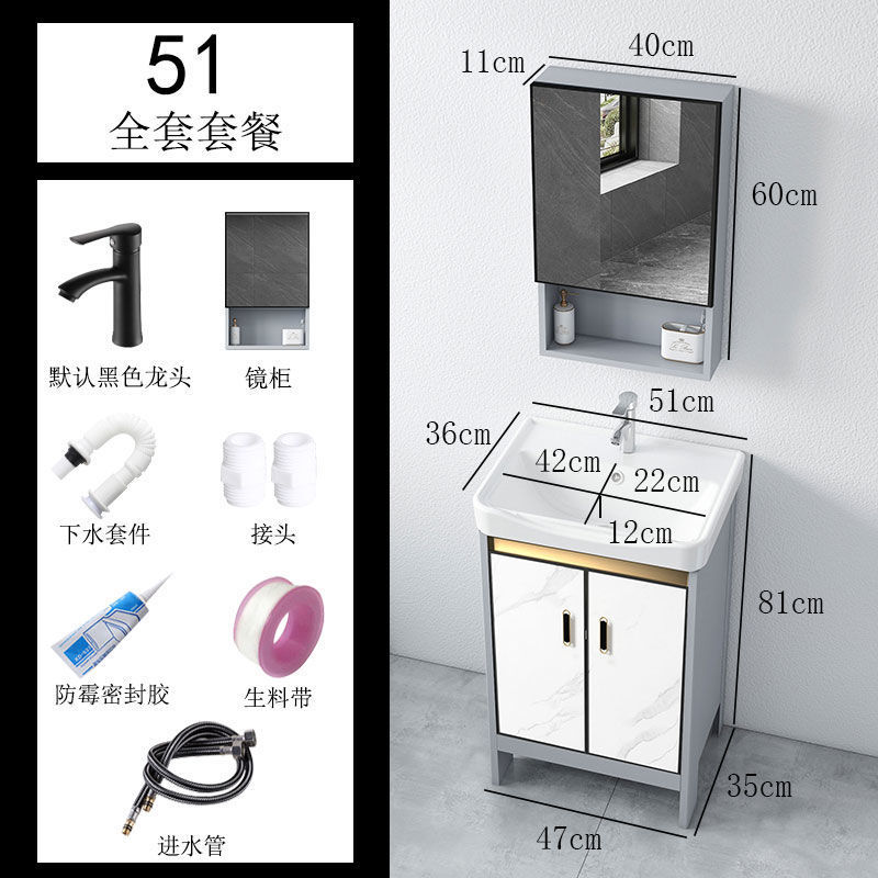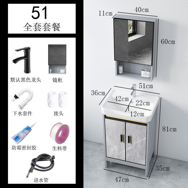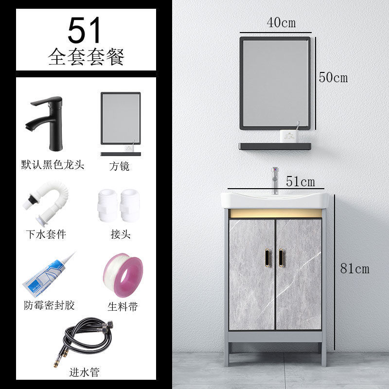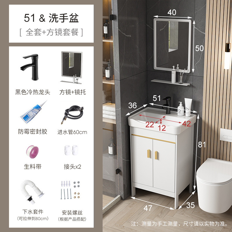 • 라이트 럭셔리 그레이-51*36 캐비닛 세면대 + 하드웨어 전체 세트 + 거울