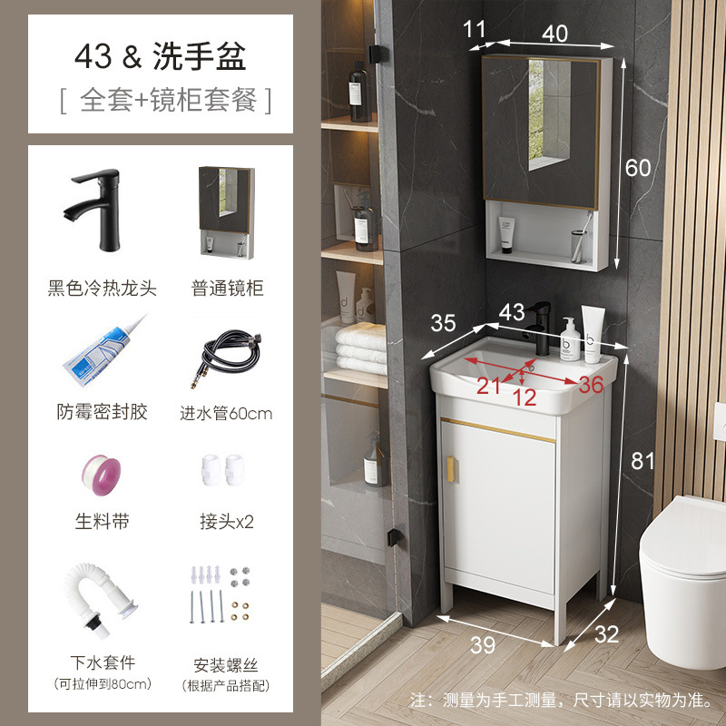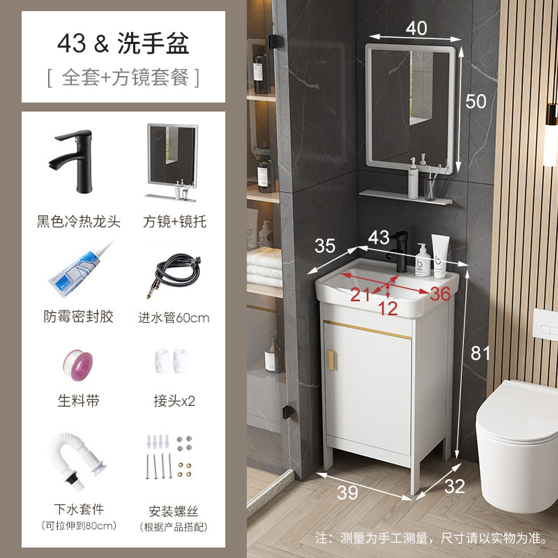• 흰색-43*35 캐비닛 세면대 + 하드웨어 전체 세트 + 거울